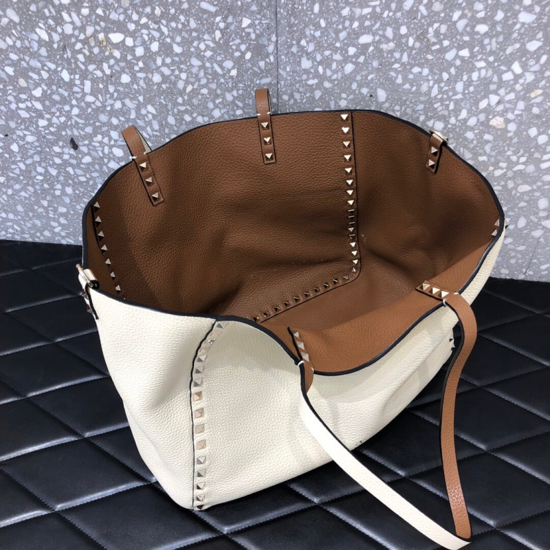 Valentino Garavani Medium Double Rockstud Reversible Tote Bag 0067J Brown/White