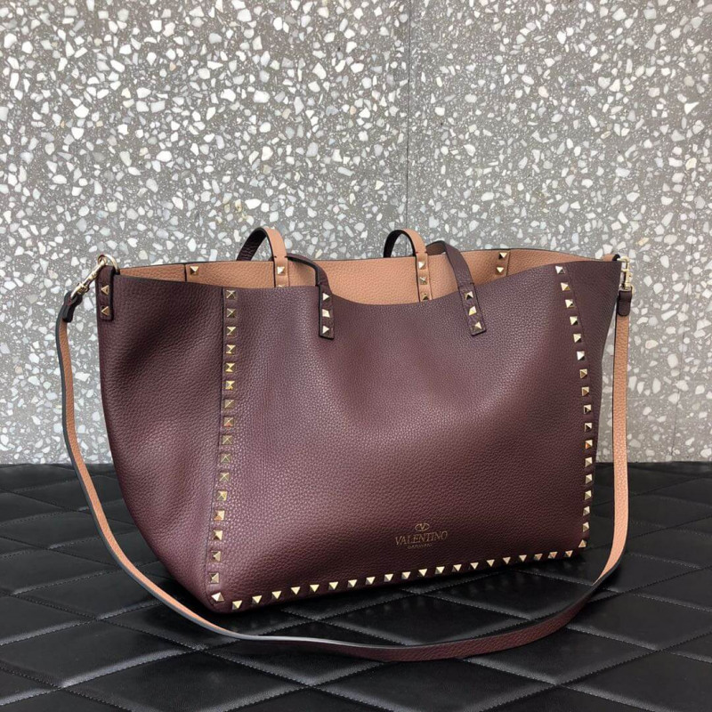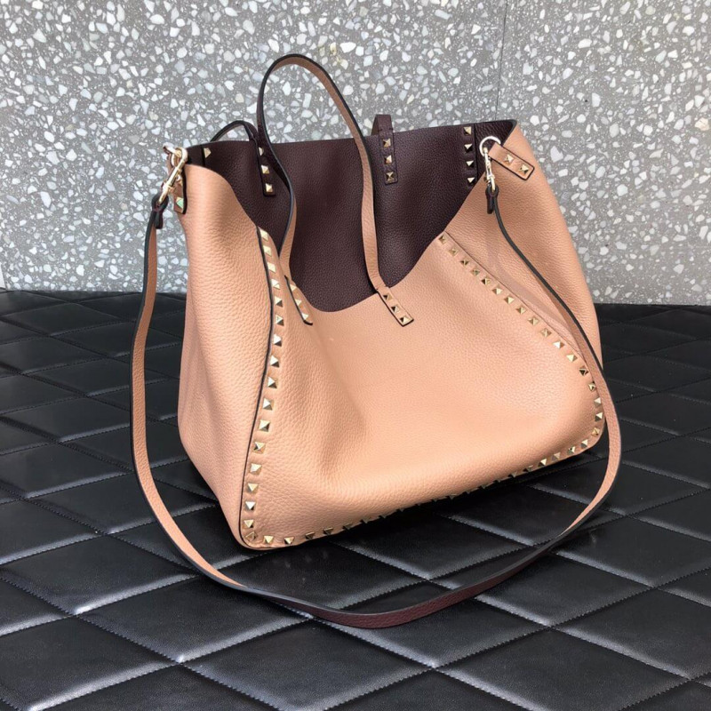 Valentino Garavani Medium Double Rockstud Reversible Tote Bag 0067J Apricot/Burgundy