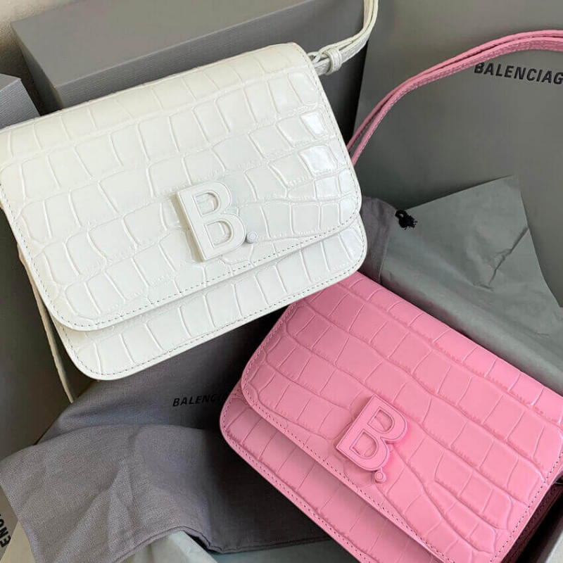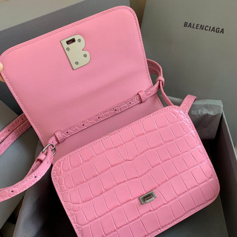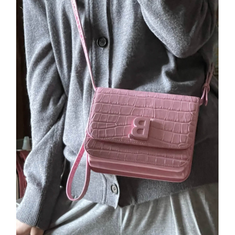 Croc-embossed calfskin shoulder bag. Detachable and adjustable shoulder strap with pin-buckle fastening. Logo hardware at face. Patch pocket at back face. Foldover flap with turn-lock fastening. Embossed logo, zippered pocket, and two patch pockets at two-compartment interior. Buffed leather lining in black. Silver-tone hardware.