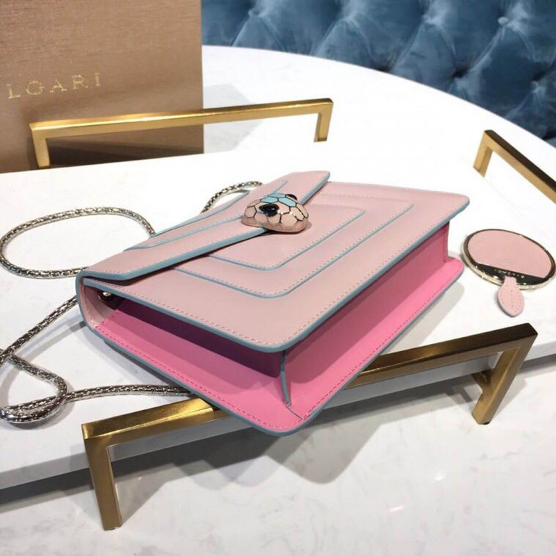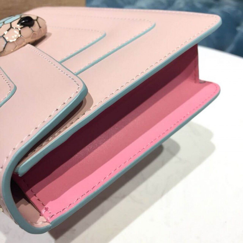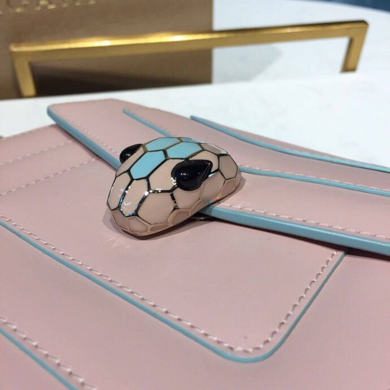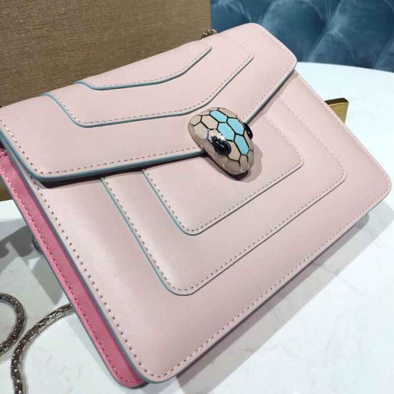 - Serpenti Forever” crossbody bag Pop Wishes in crystal rose calf leather body and rhapsody opal smooth calf leather sides.