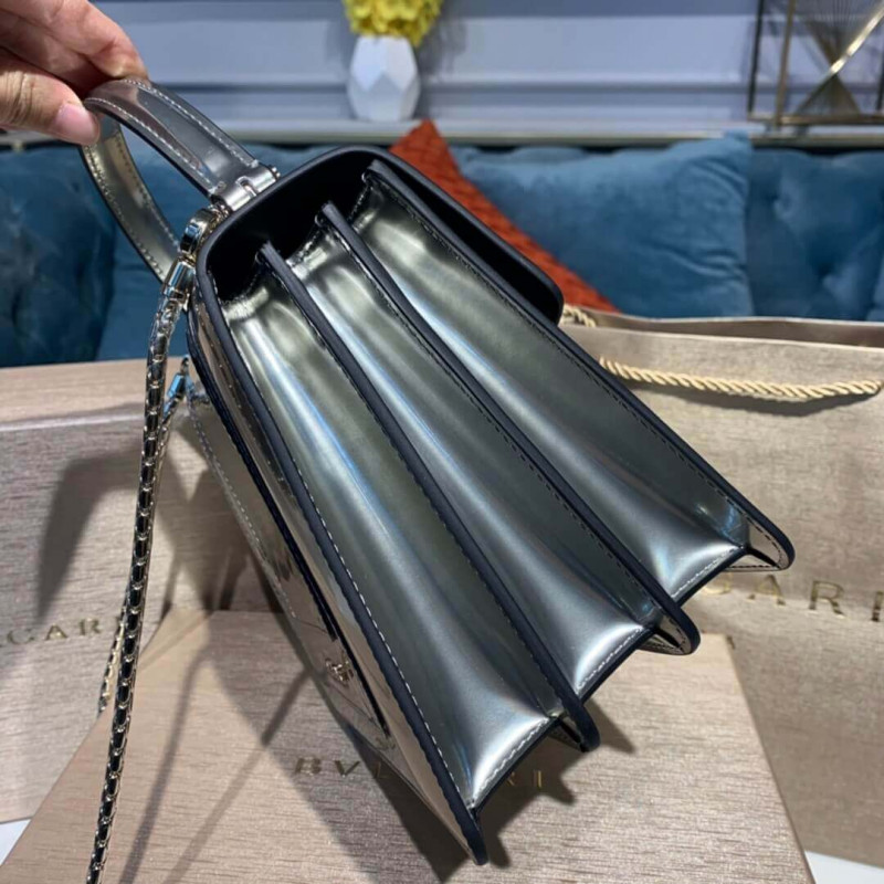 Bvlgari Serpenti Forever Crossbody Top Handle Bag 18cm in Silver Brushed Metallic 35106 284537