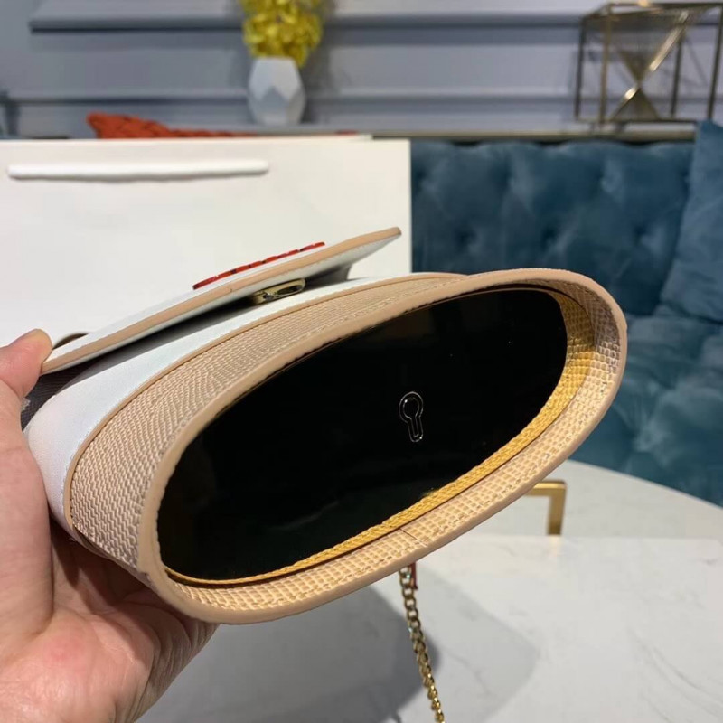 This mini bag is made from semi-aniline leather crafted with a "tamponato a mano" technique for an embossed and slight bi-colour effect. Tanning imparts a specific character to the skin, such as hues and wrinkles, combined with a light and transparent aniline finish.