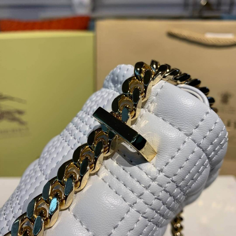 A softly structured, quilted runway bag crafted from Italian-tanned lambskin. The style is punctuated with a polished chain strap and the Thomas Burberry Monogram. Wear it on the shoulder or style as a crossbody.