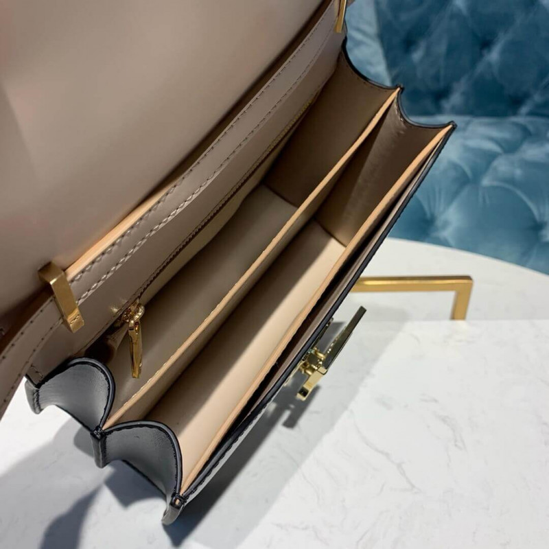 A structured bag in two-tone leather with a Thomas Burberry Monogram clasp. Wear on the shoulder, across the body or carry as a clutch.