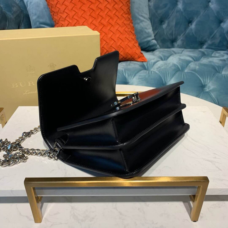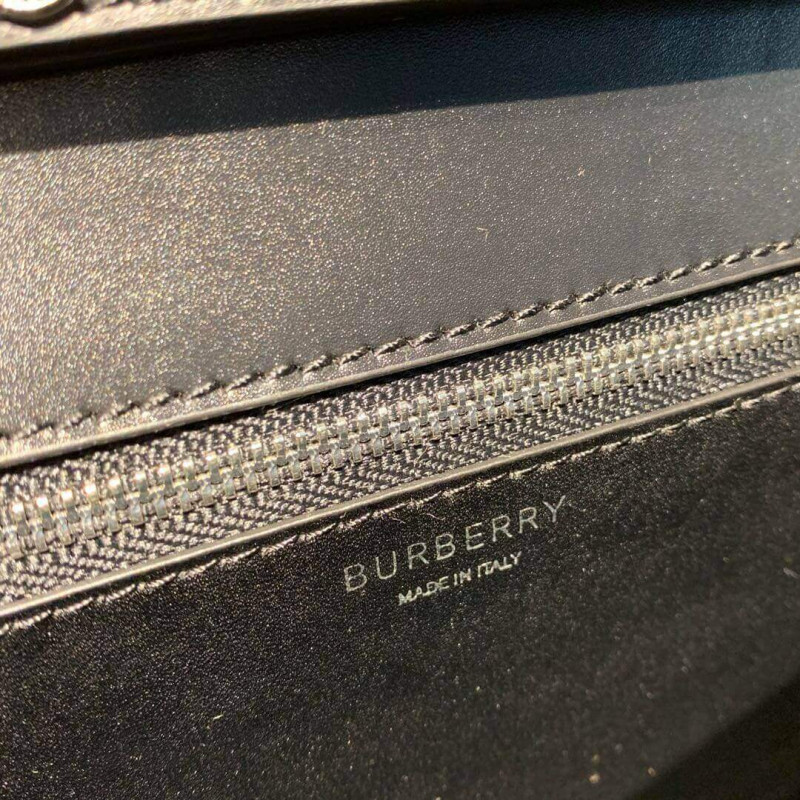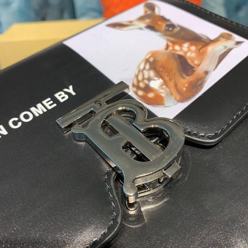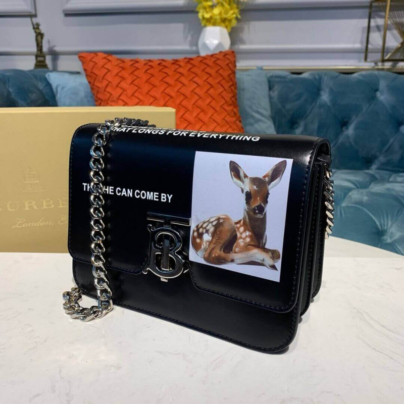 A structured leather bag with a Thomas Burberry Monogram clasp and runway prints, including a deer motif and an excerpt from William Shakespeare’s ‘The Two Gentlemen of Verona’. Wear on the shoulder, across the body or carry as a clutch.