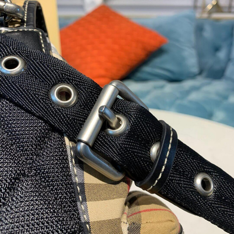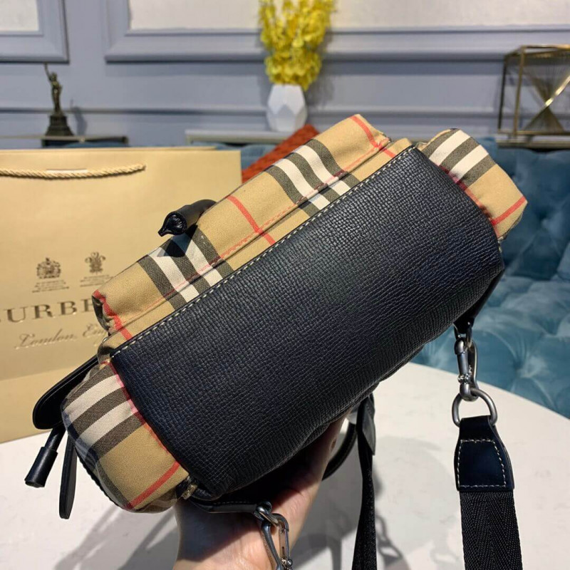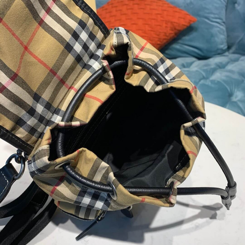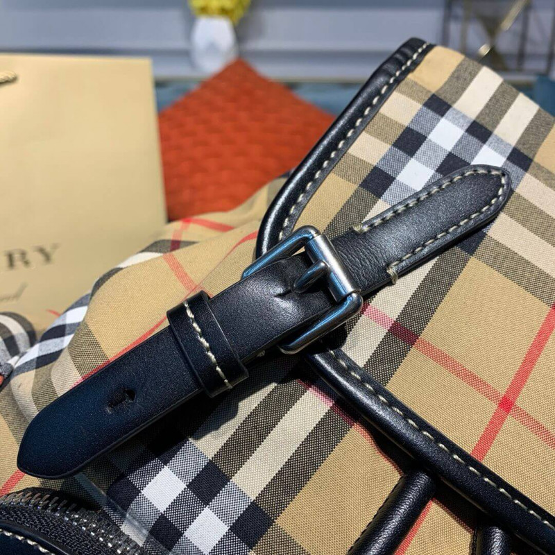 Latest in 2019, Inspired by military archive bags, our timeless backpack is updated in Rainbow Vintage check cotton canvas and finished with topstitched leather trims.