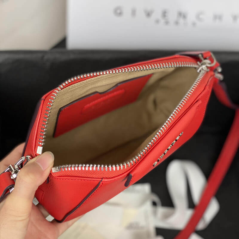 Givenchy s coveted Antigona satchel is scaled down to miniature proportions and equipped with an elongated strap for styling versatility, all finished with sleek logo detail and silvertone hardware.