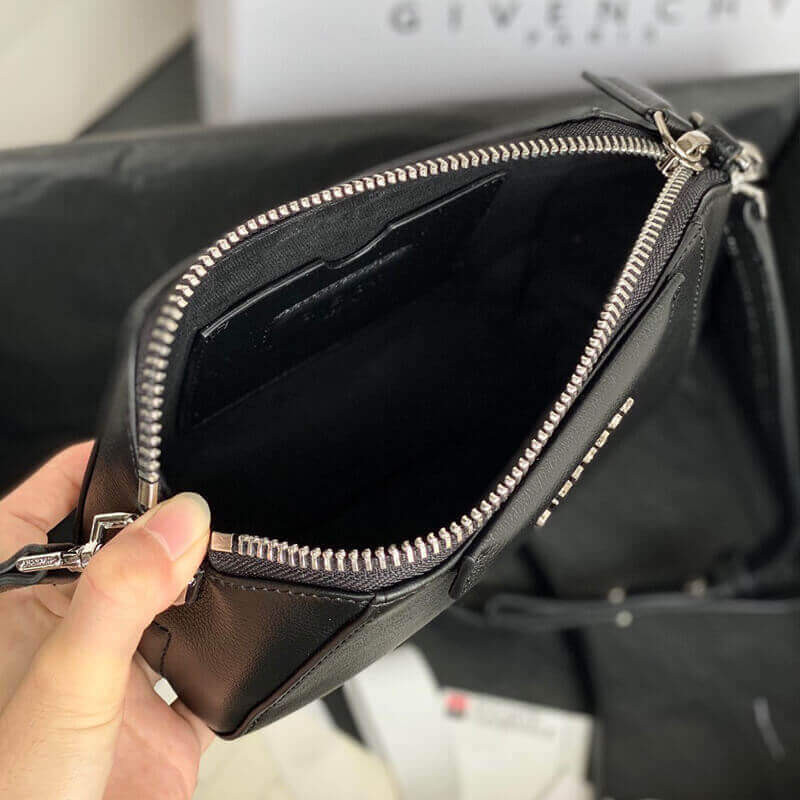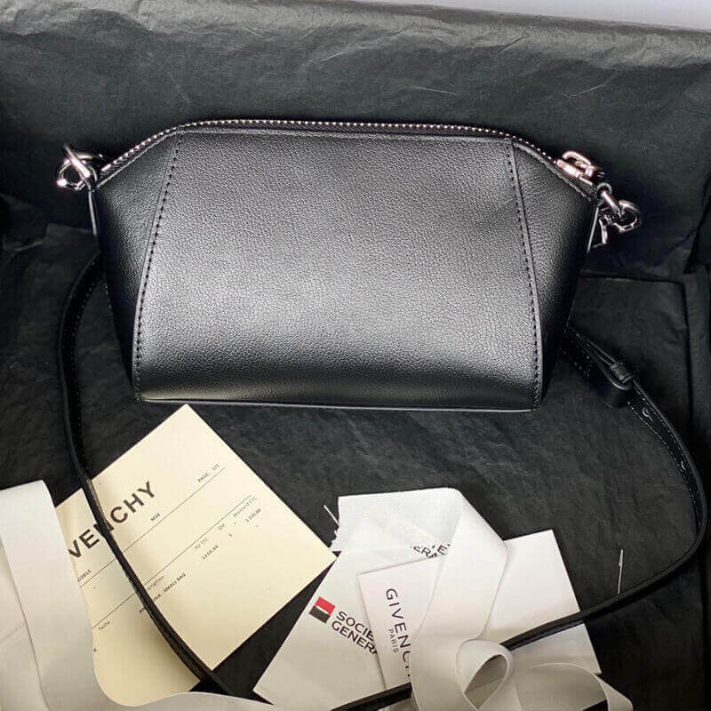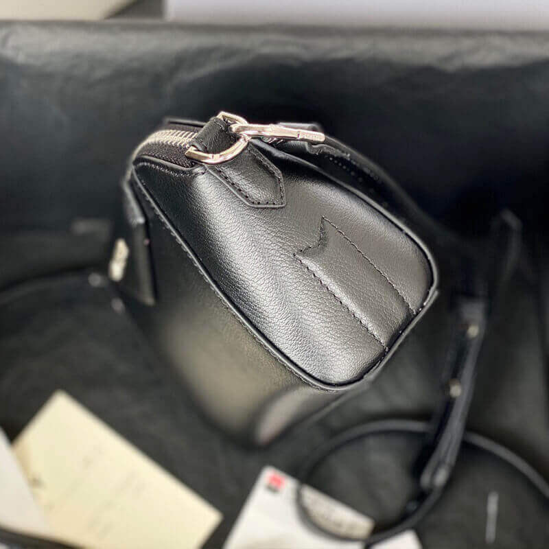 Givenchy s coveted Antigona satchel is scaled down to miniature proportions and equipped with an elongated strap for styling versatility, all finished with sleek logo detail and silvertone hardware.
