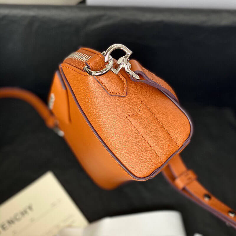 Givenchy s coveted Antigona satchel is scaled down to miniature proportions and equipped with an elongated strap for styling versatility, all finished with sleek logo detail and silvertone hardware.