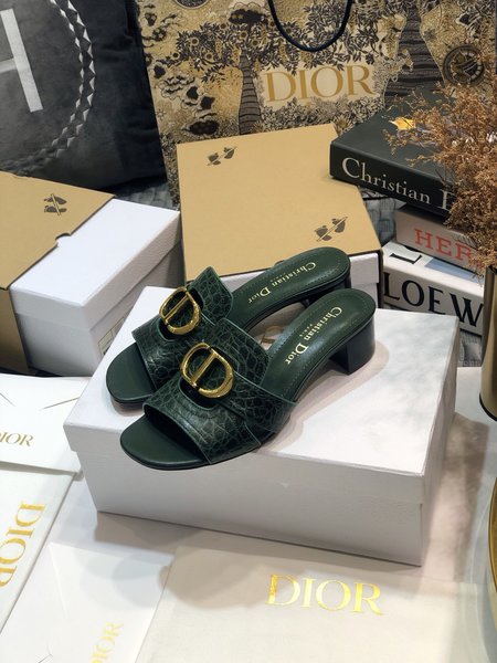 Dior CD Letter Metal Logo Flat Hollow Sandals Round Toe Thick Heel Jelly Slippers