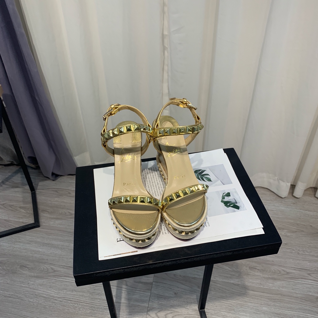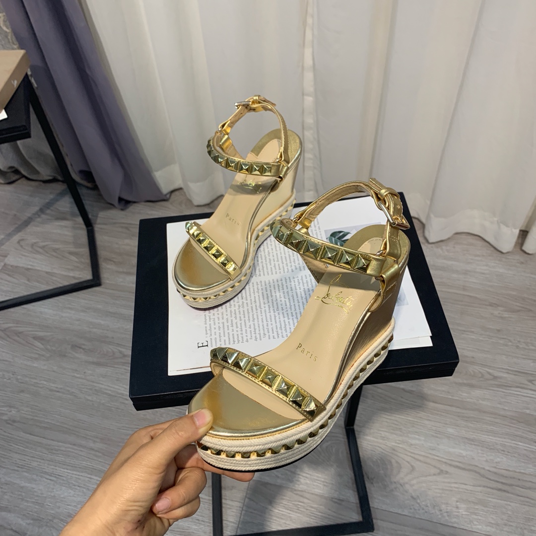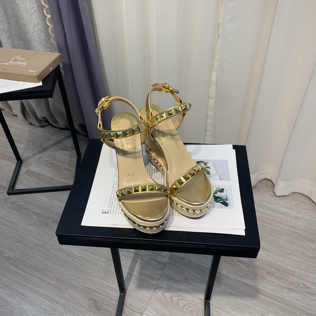 Red-soled leather sandals are sold out. The vamp rivets are hand-made and the heel is 12cm high. Four colors are available. Sheepskin feet are very comfortable. Women s size 34-39 (customized size 40)