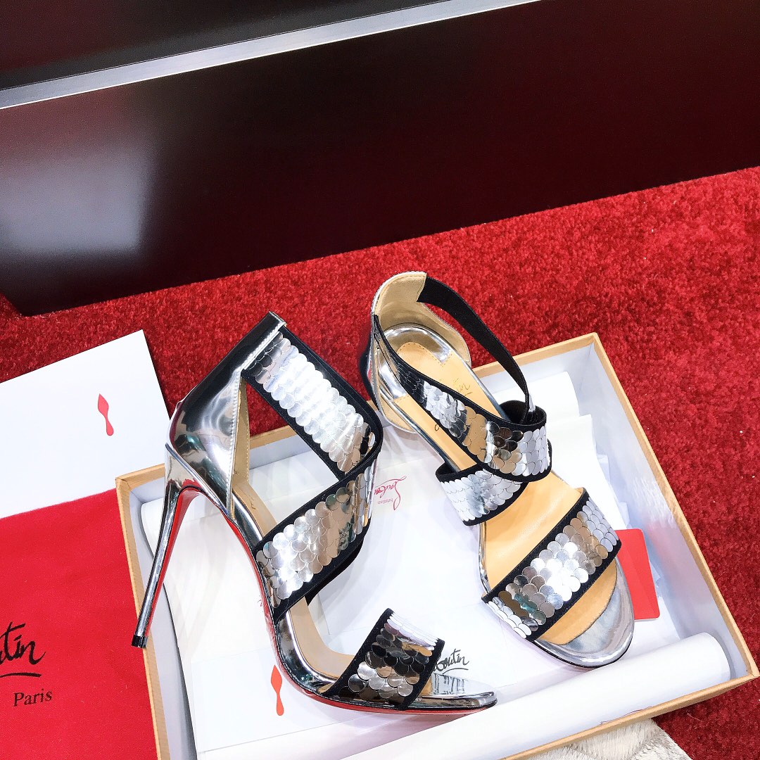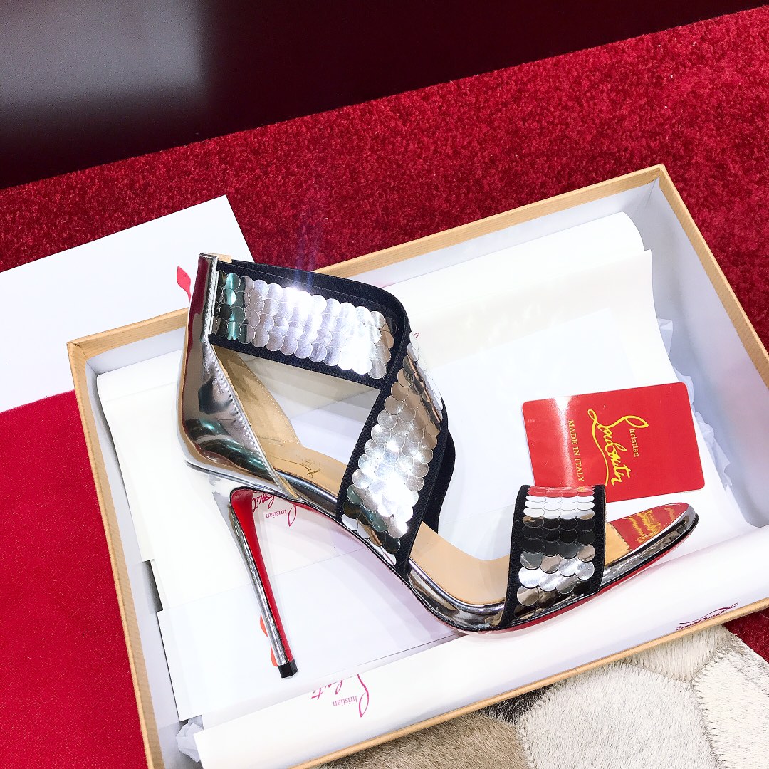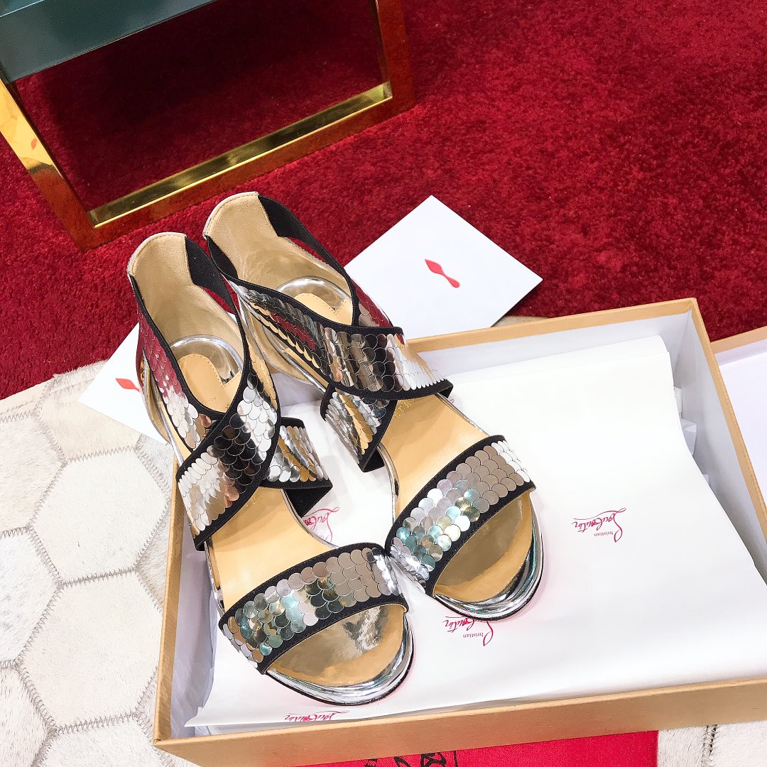 Christian Louboutine Shiny sequins comfortable sheepskin lining red sole shoes