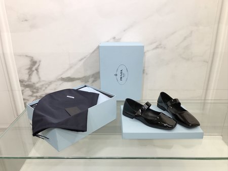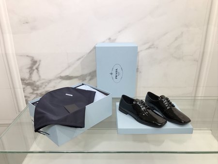Prada Vintage lace-up flat-heel women s shoes patent leather with sheepskin