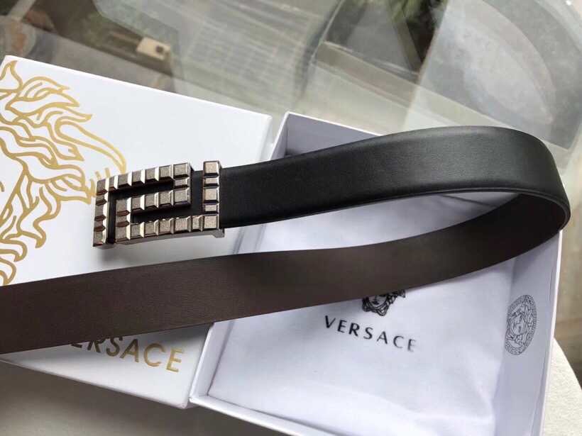 Versace Reversible cowhide leather stainless steel metal buckle 3.5cm men s belt