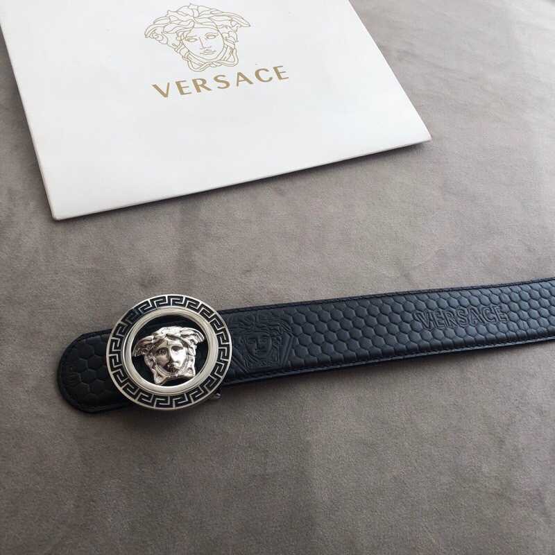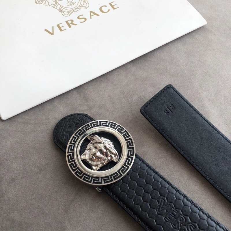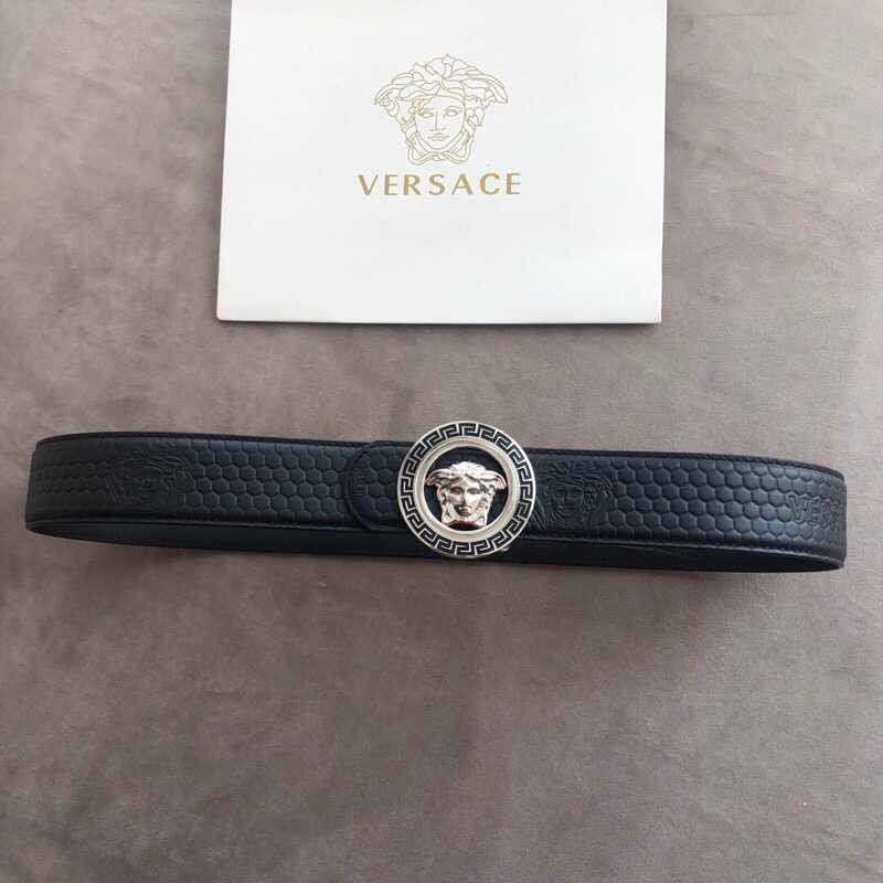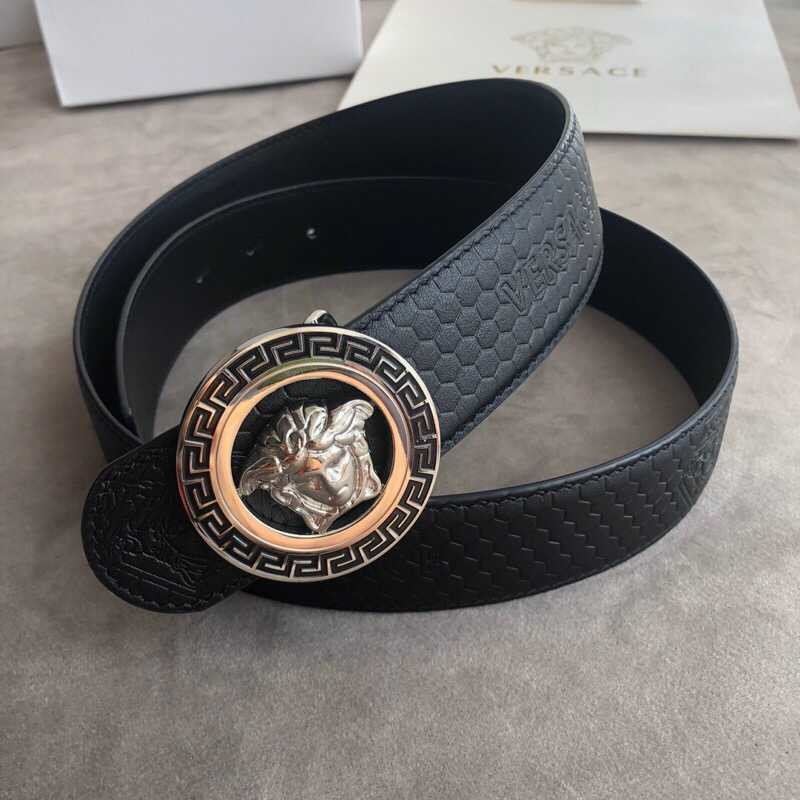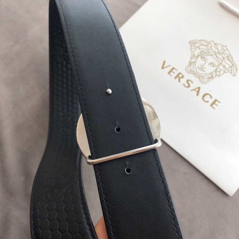 Versace Men s Black Cowhide Medusa Logo Belt 3.8cm