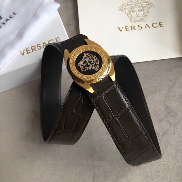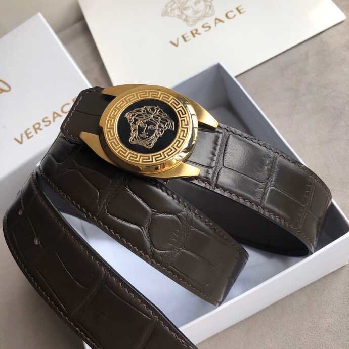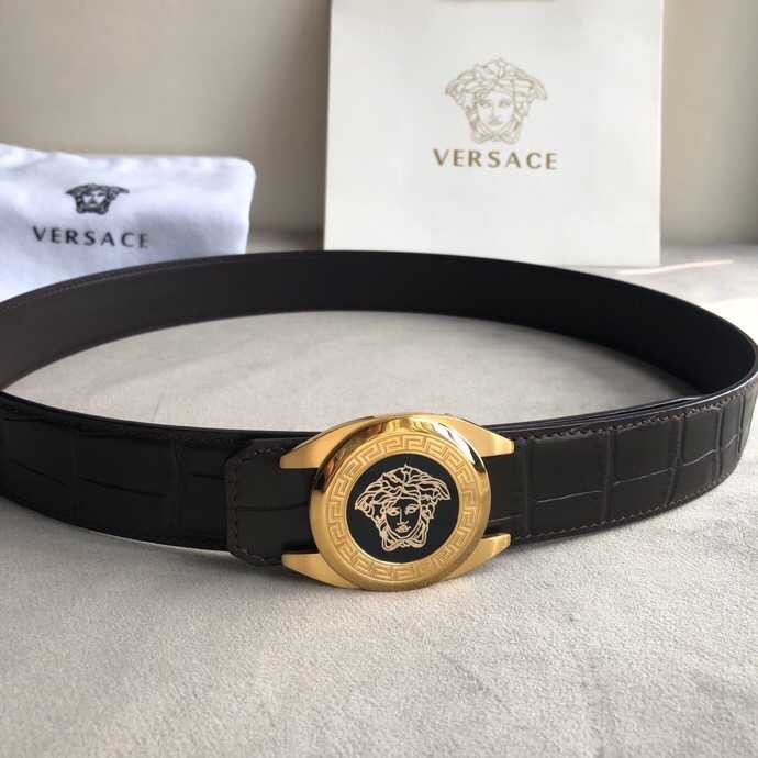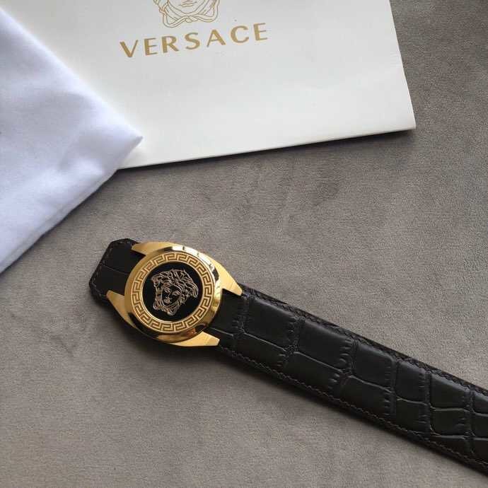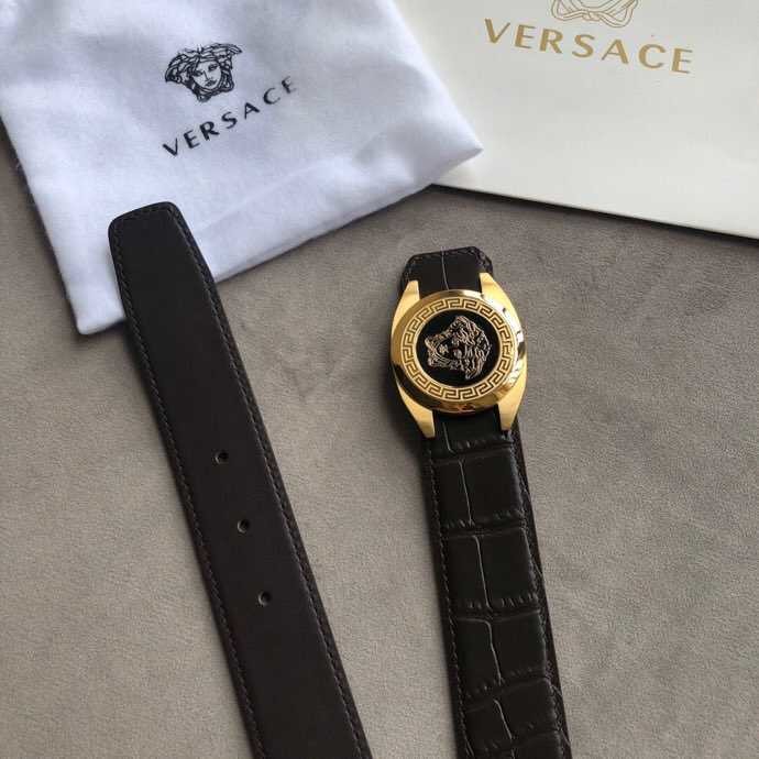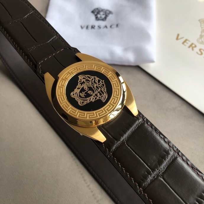 Versace Stainless steel Medusa metal buckle 3.8cm men s black leather belt