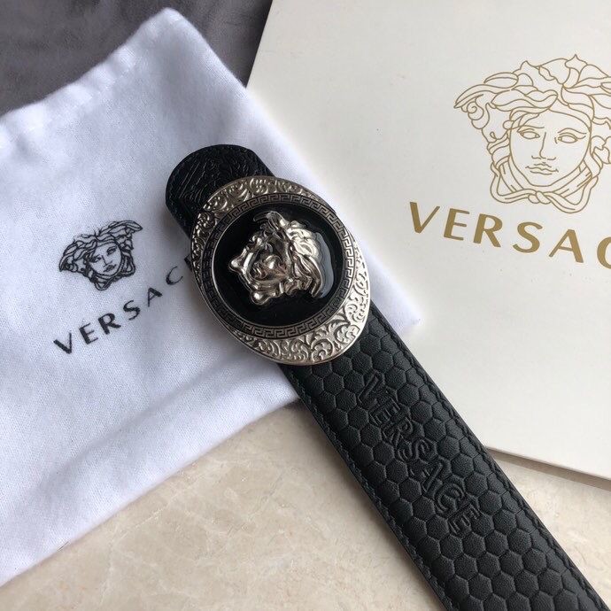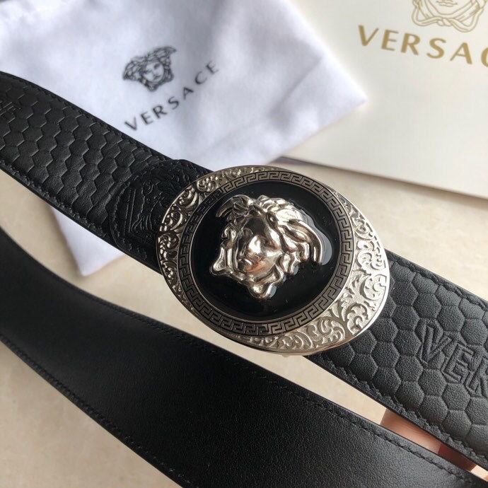 Versace Stainless steel Medusa metal buckle 3.8cm men s black leather belt