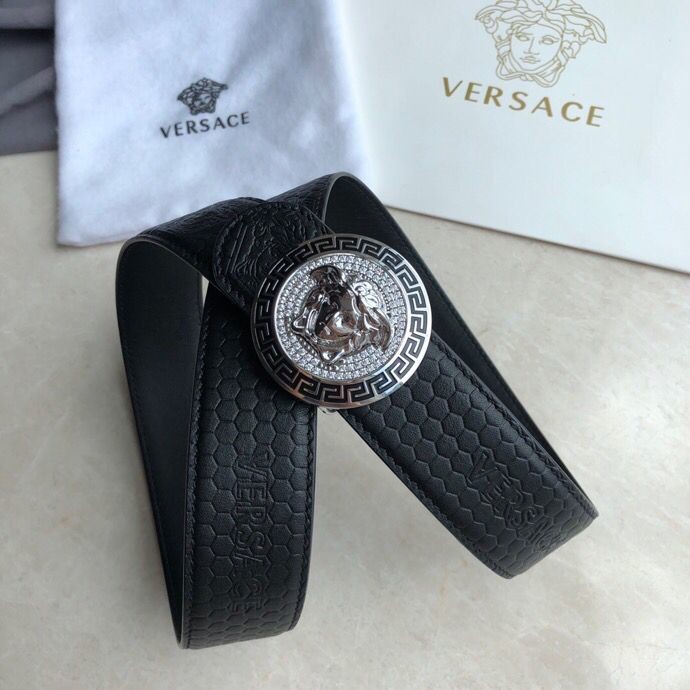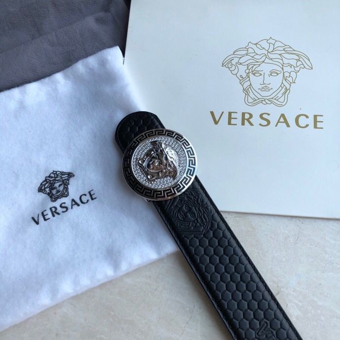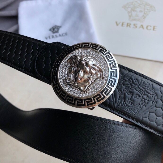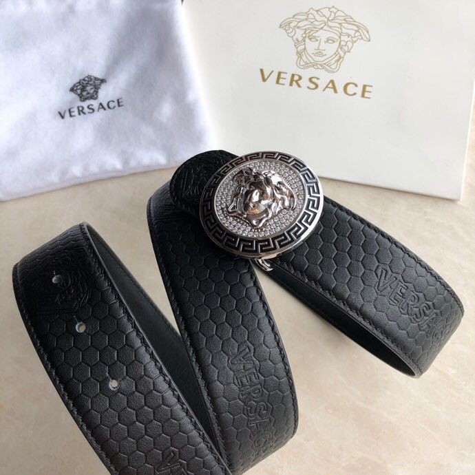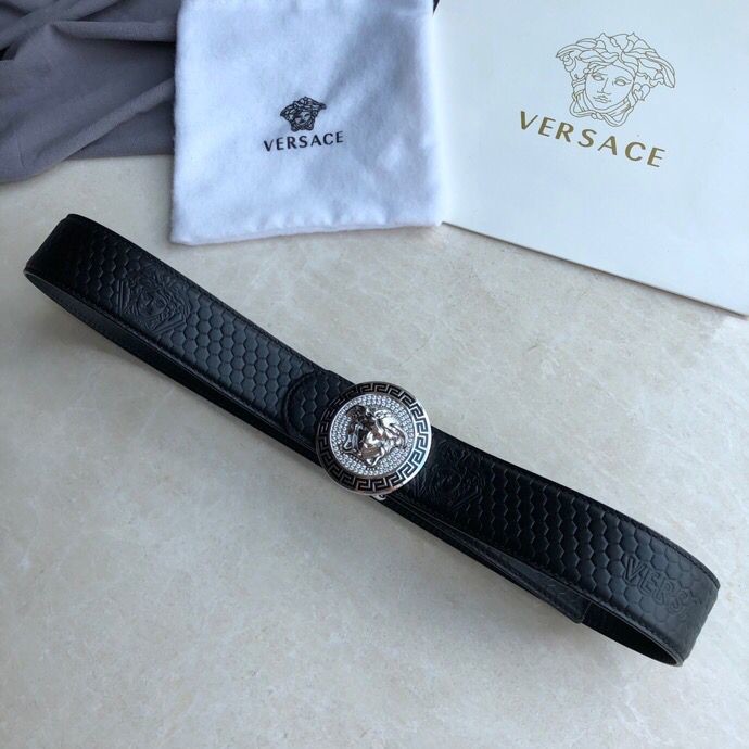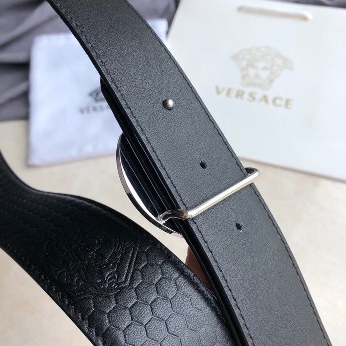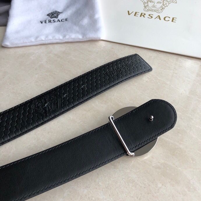 Versace Men s Black Cowhide Medusa Logo Belt 3.8cm
