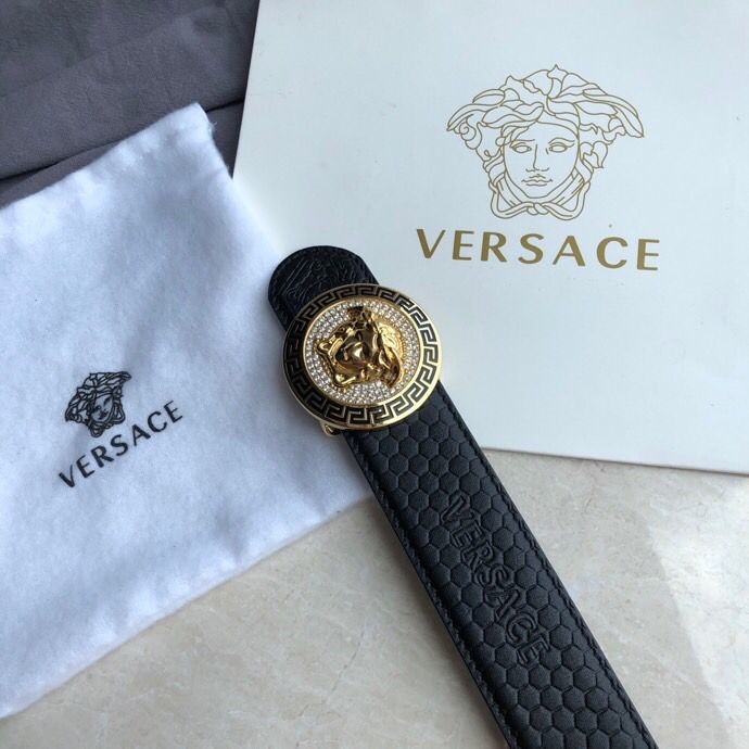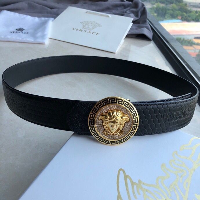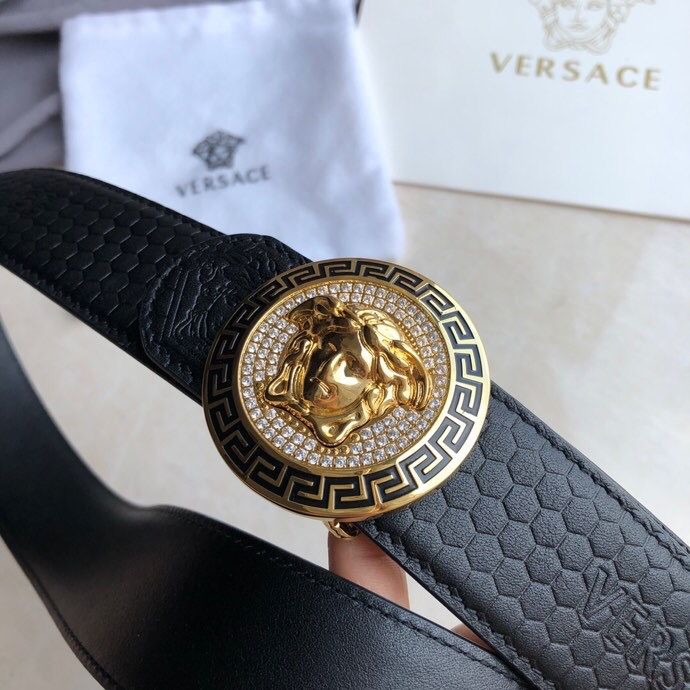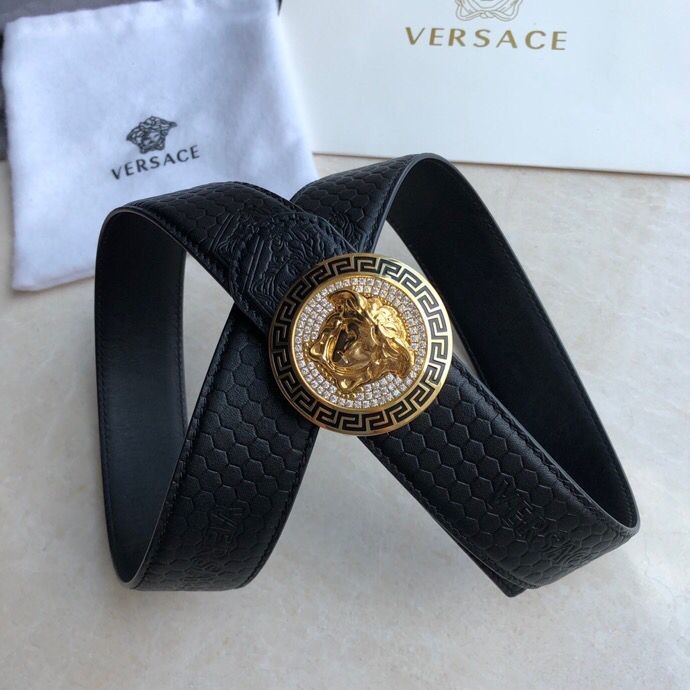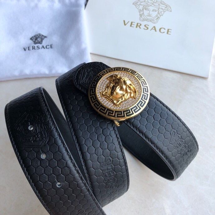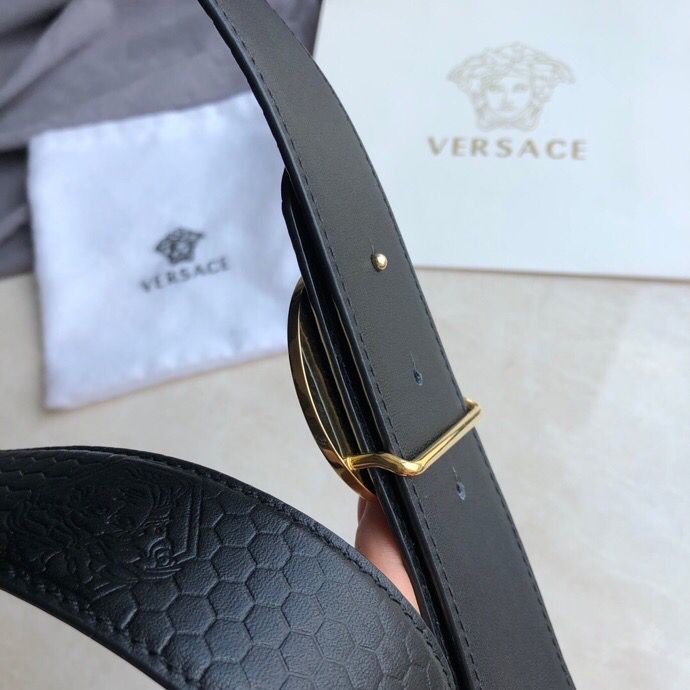 Versace Men s Black Cowhide Medusa Logo Belt 3.8cm