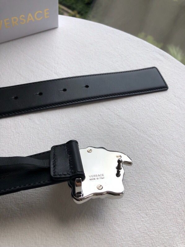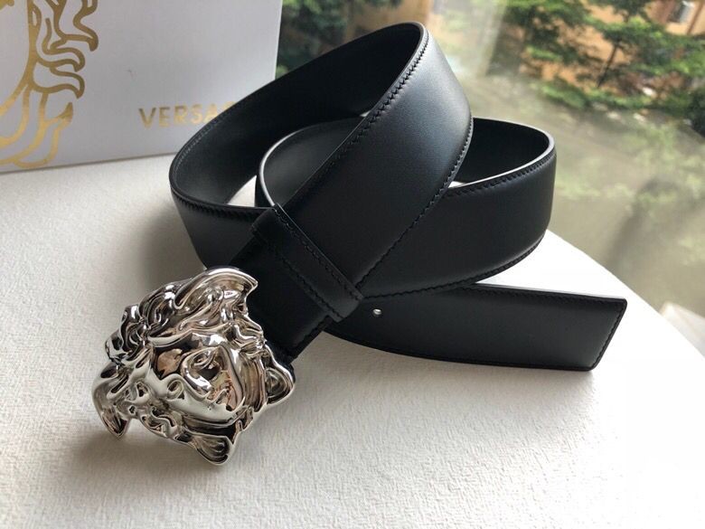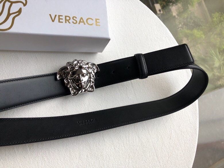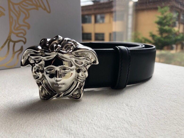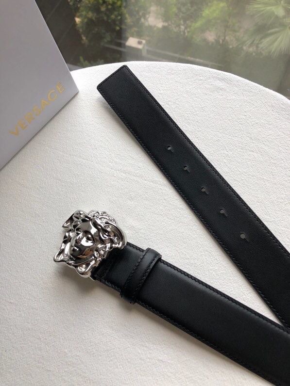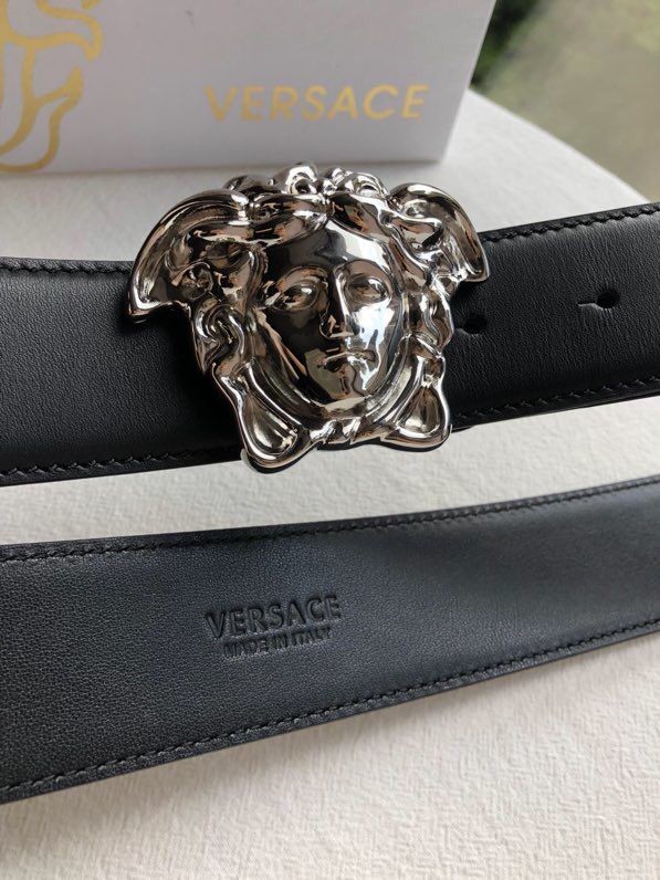 Versace Men s black flat cowhide gold Medusa head belt with metal buckle 3.8cm