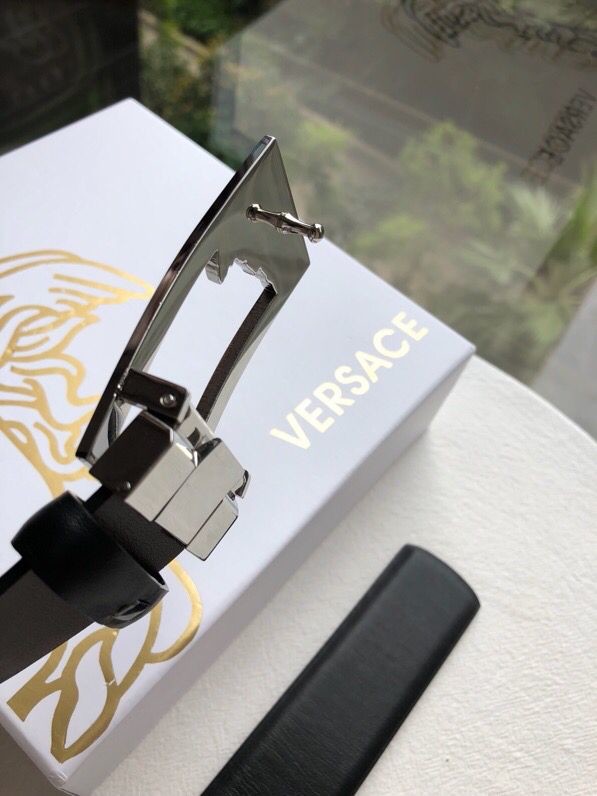 Versace Men s Reversible cowhide leather stainless steel Medusa head hollow metal buckle belt 3.5cm