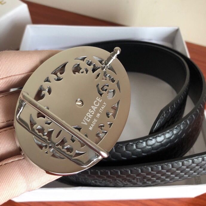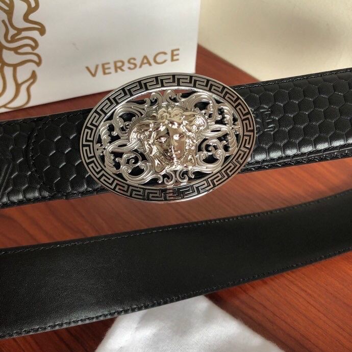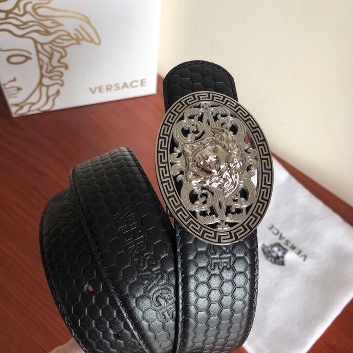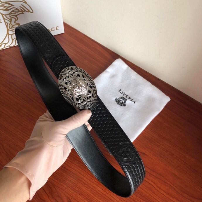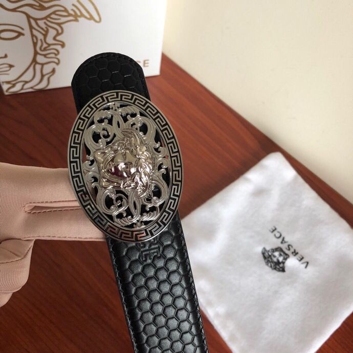 Versace Men s Black Cowhide Medusa Logo Belt 3.8cm