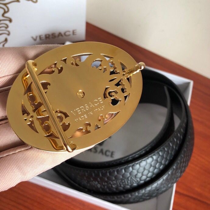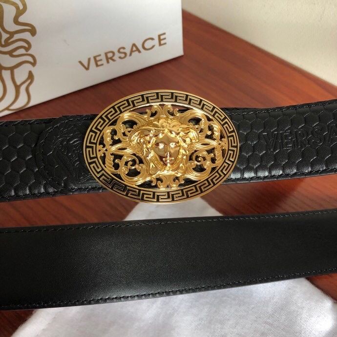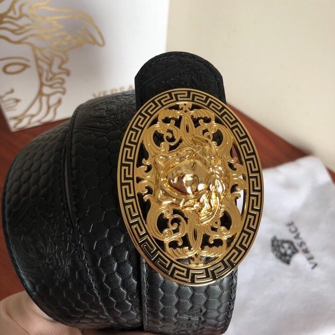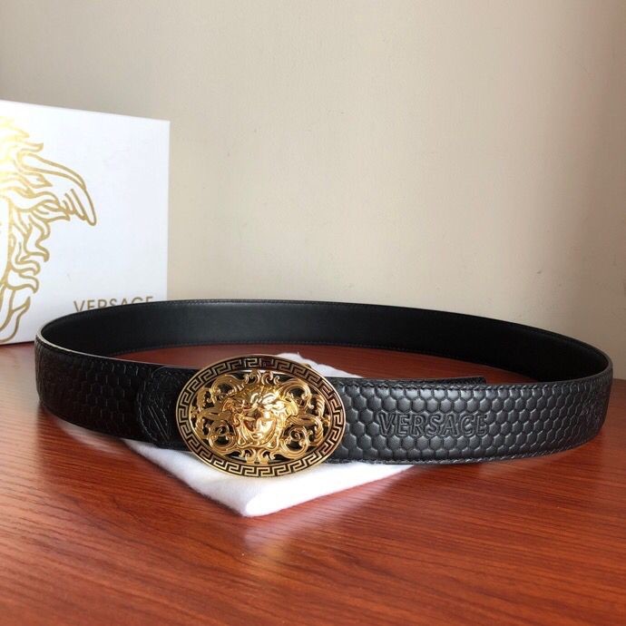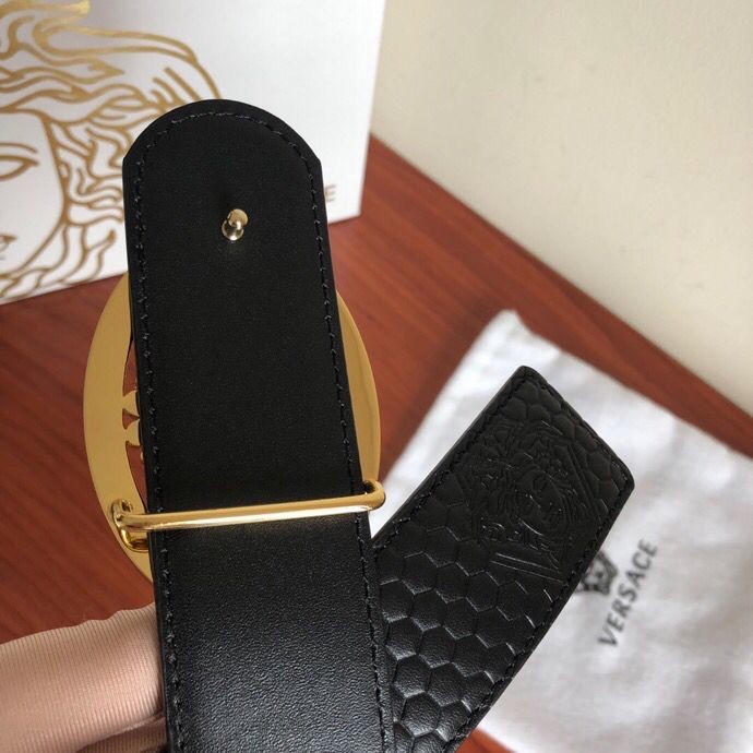 Versace Men s Black Cowhide Medusa Logo Belt 3.8cm
