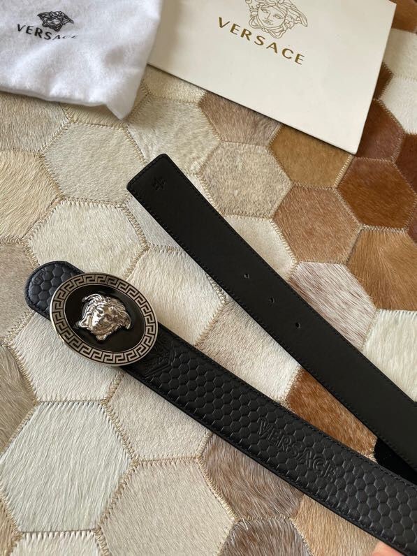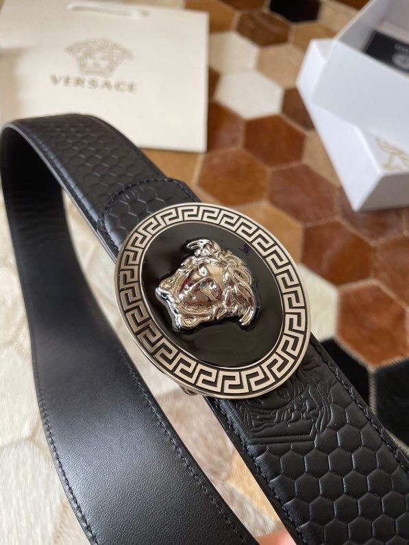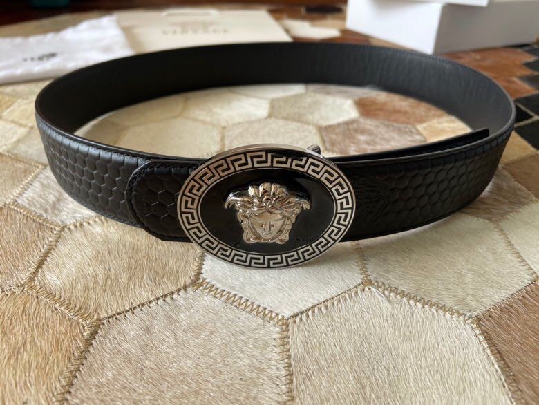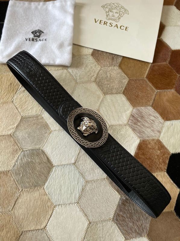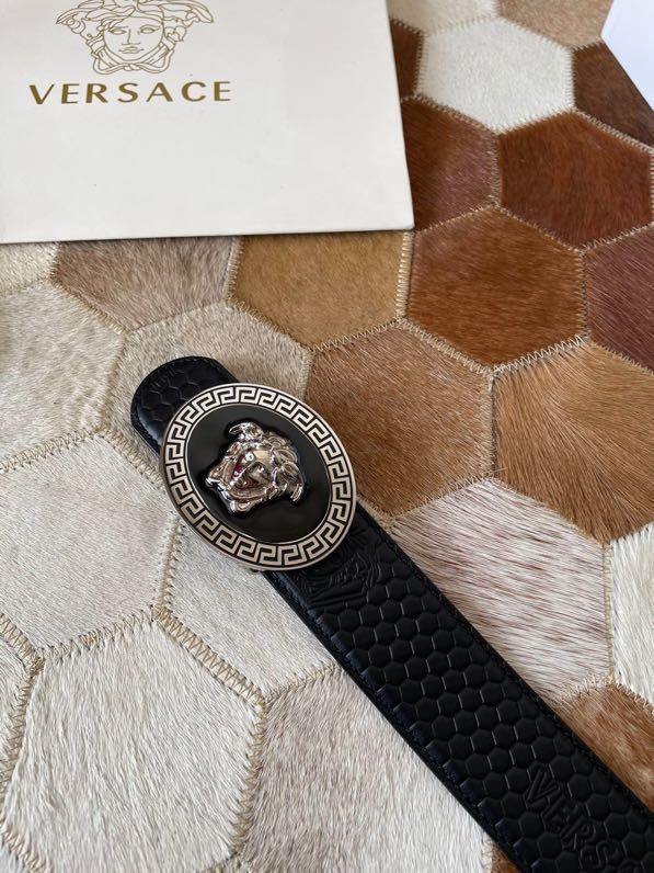Versace Stainless steel Medusa metal buckle 3.8cm men s black leather belt