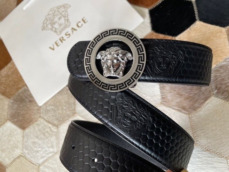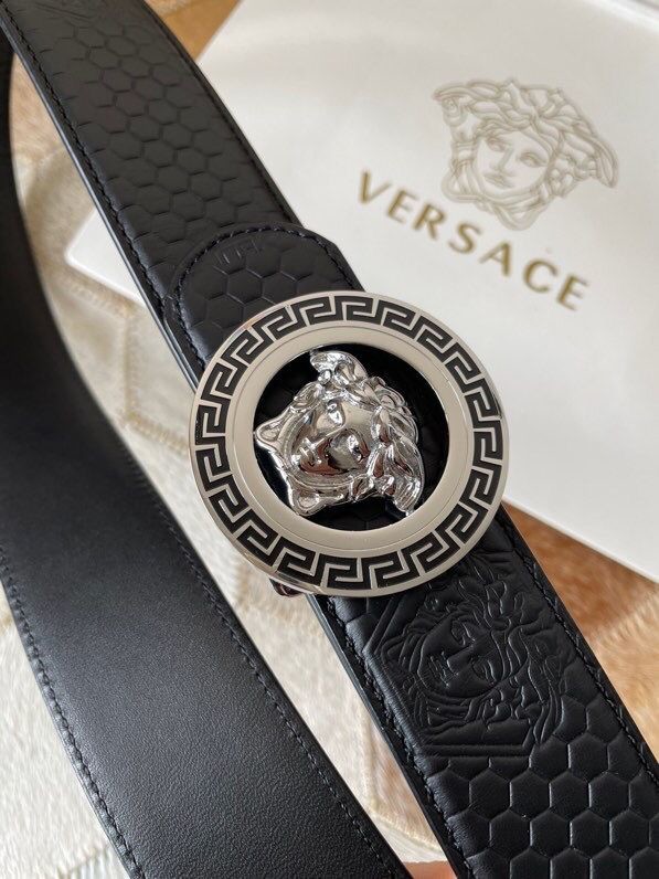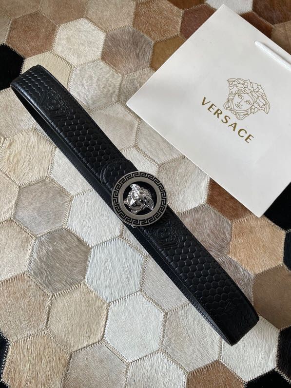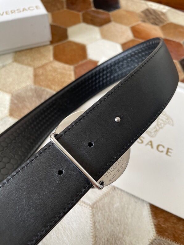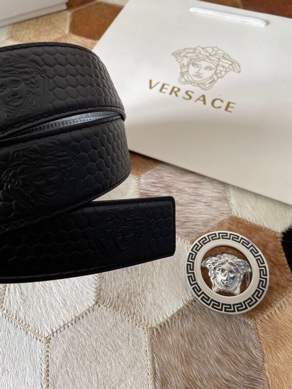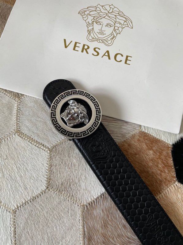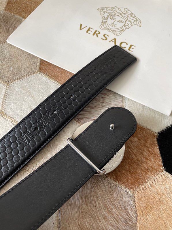 Versace Hollow hanging buckle men s black leather belt 3.8cm