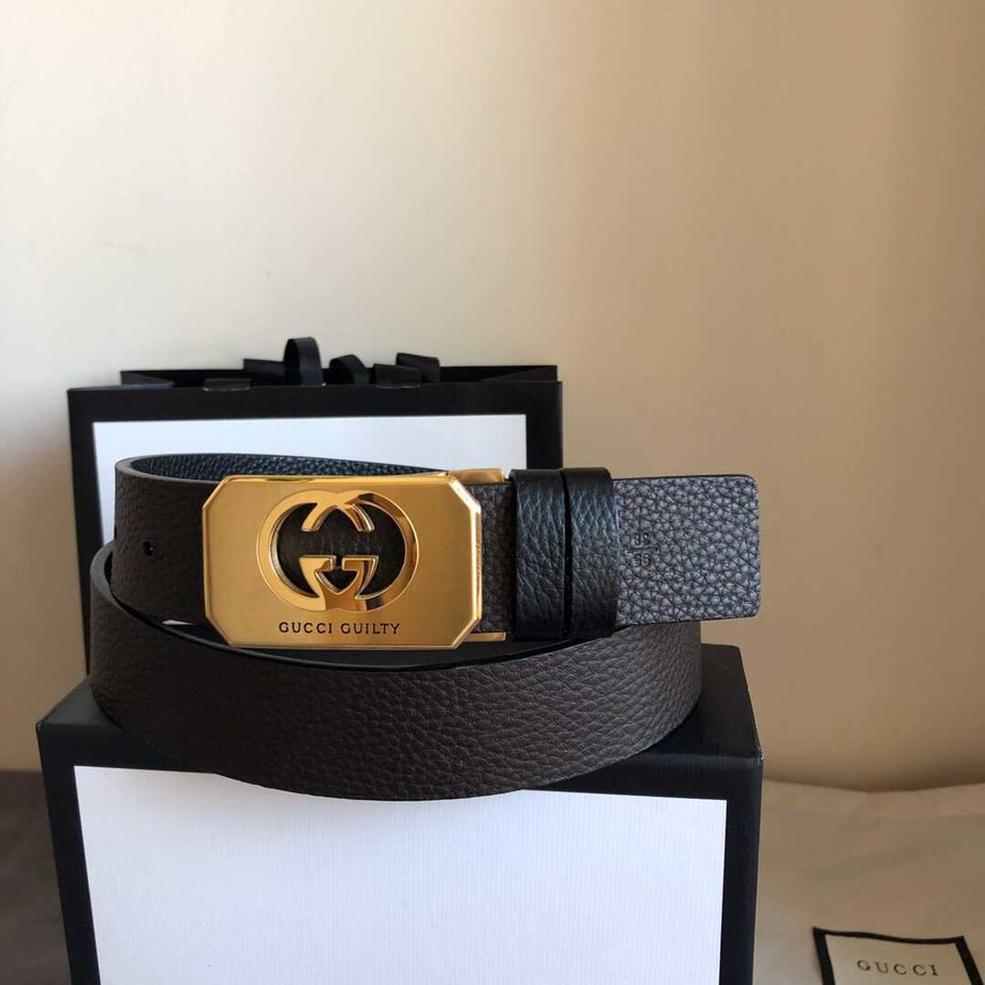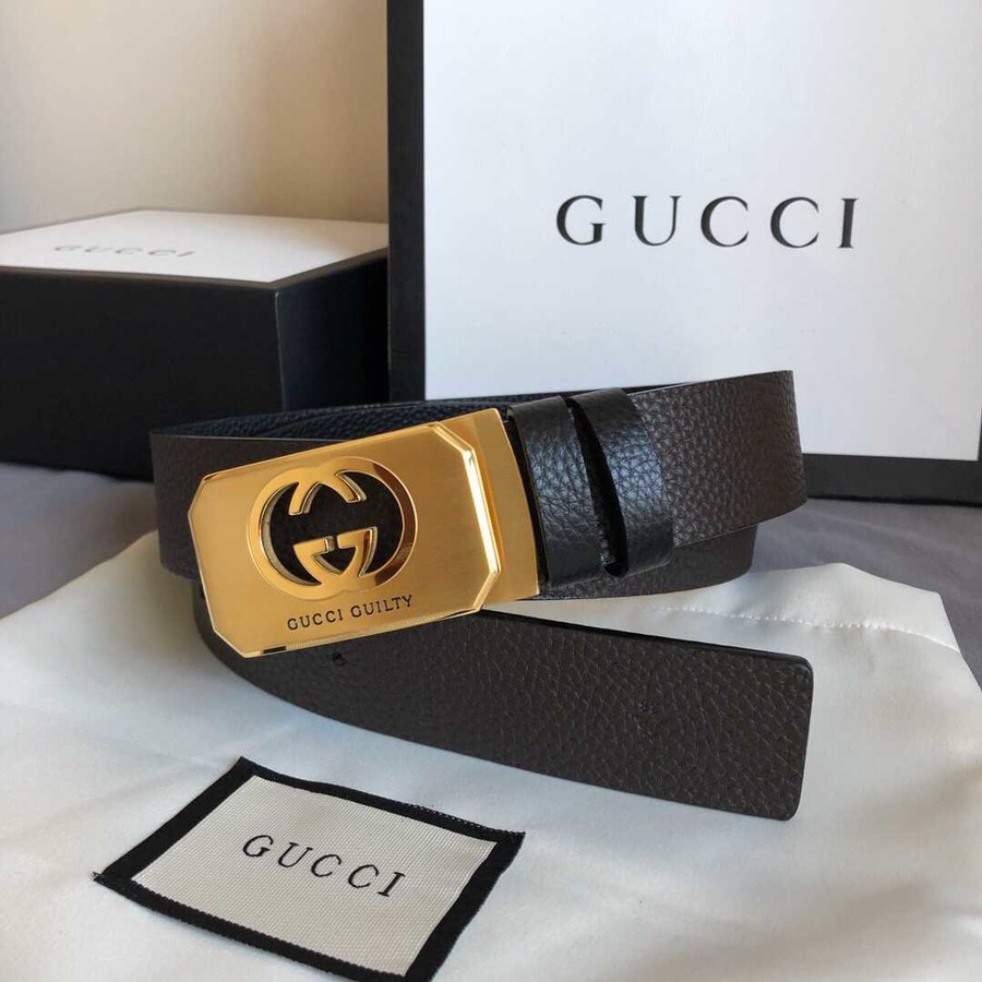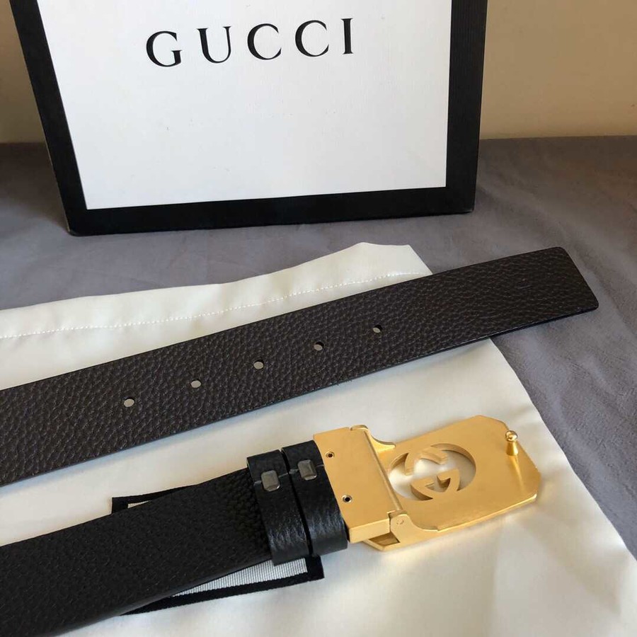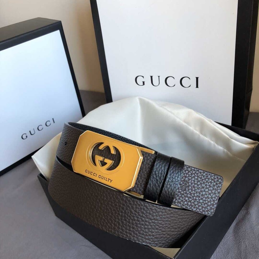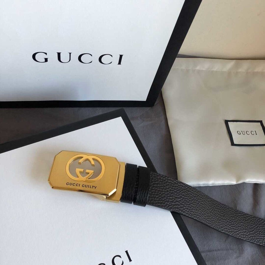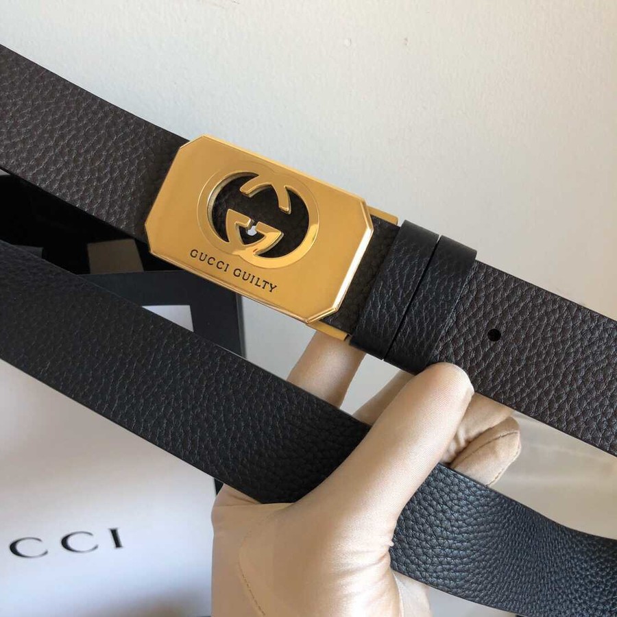 Gucci Stainless steel hollow metal buckle leather belt 35mm