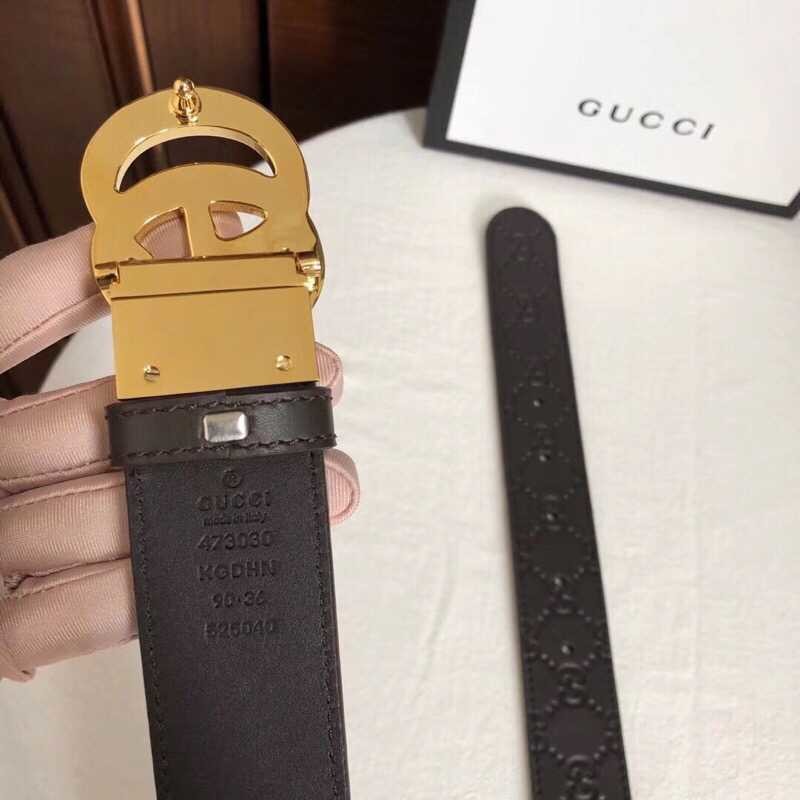 Gucci GG rotating metal buckle Logo embossed belt men s belt 36mm
