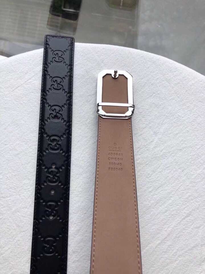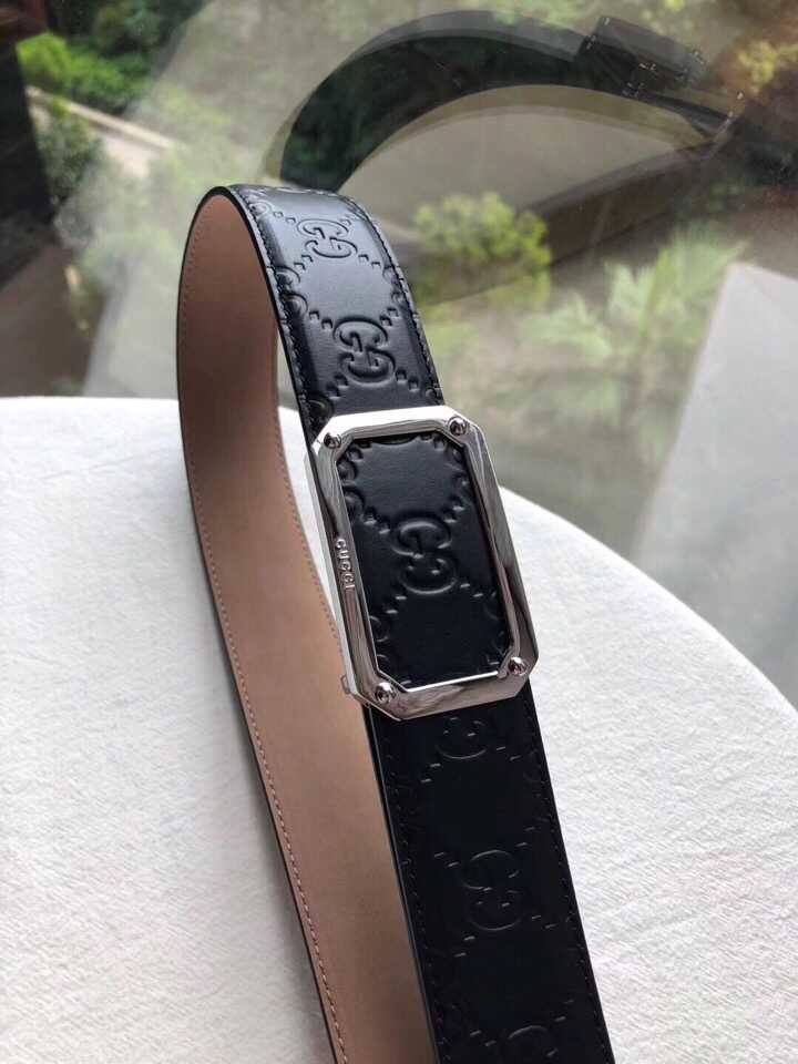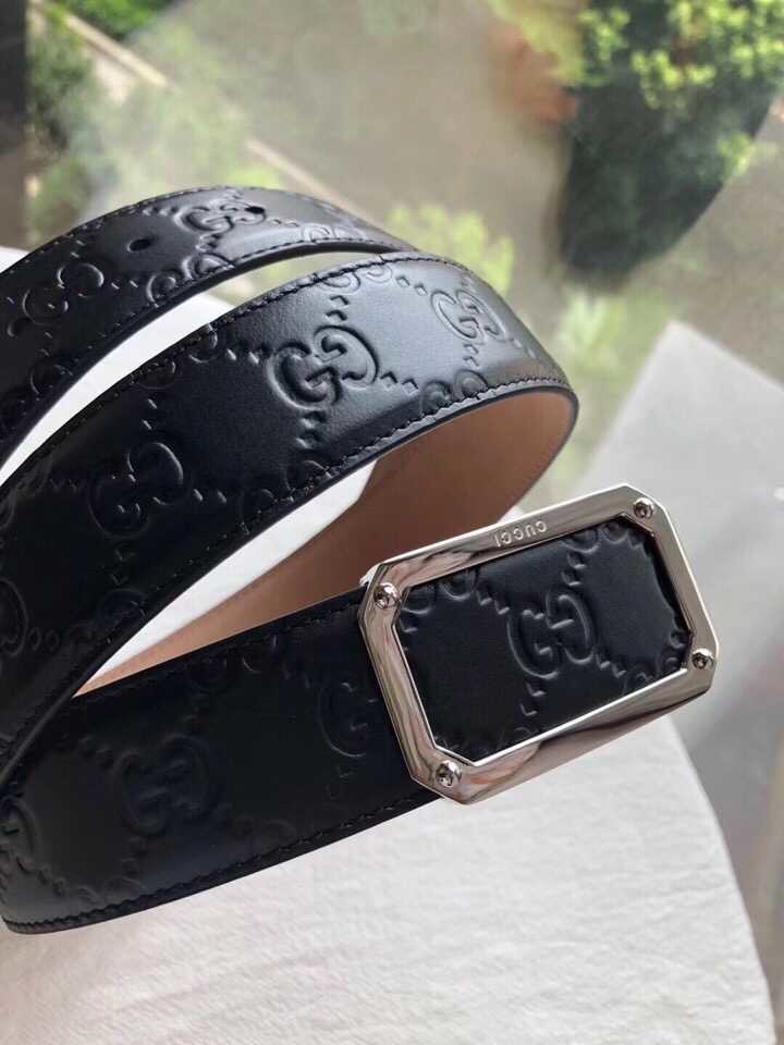 Gucci Exquisite square metal buckle GG embossed black cowhide belt 35mm