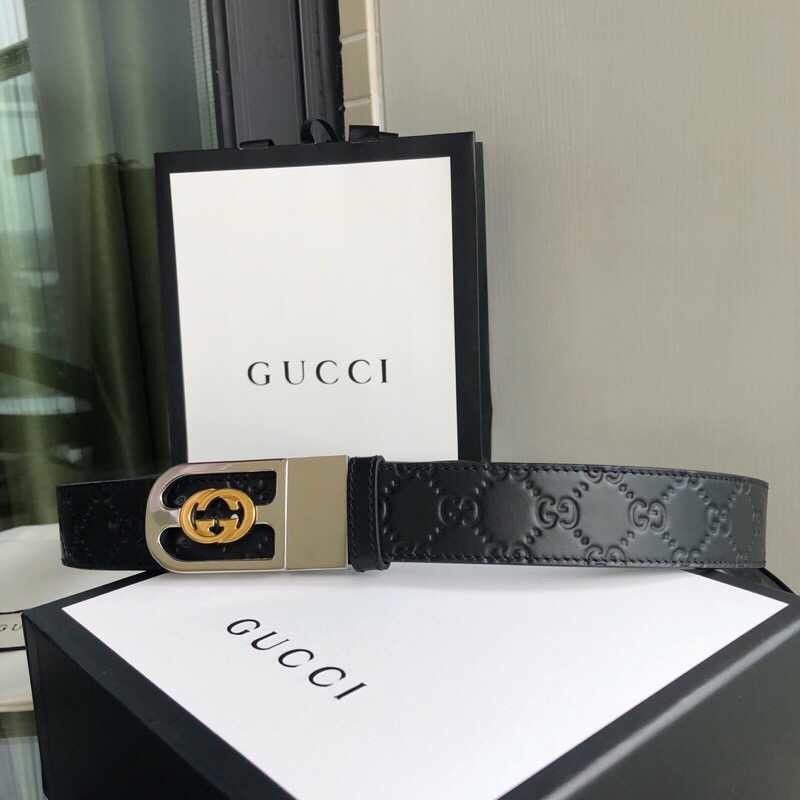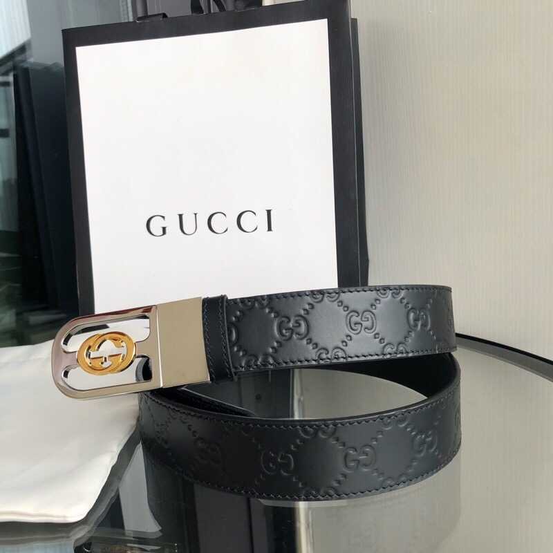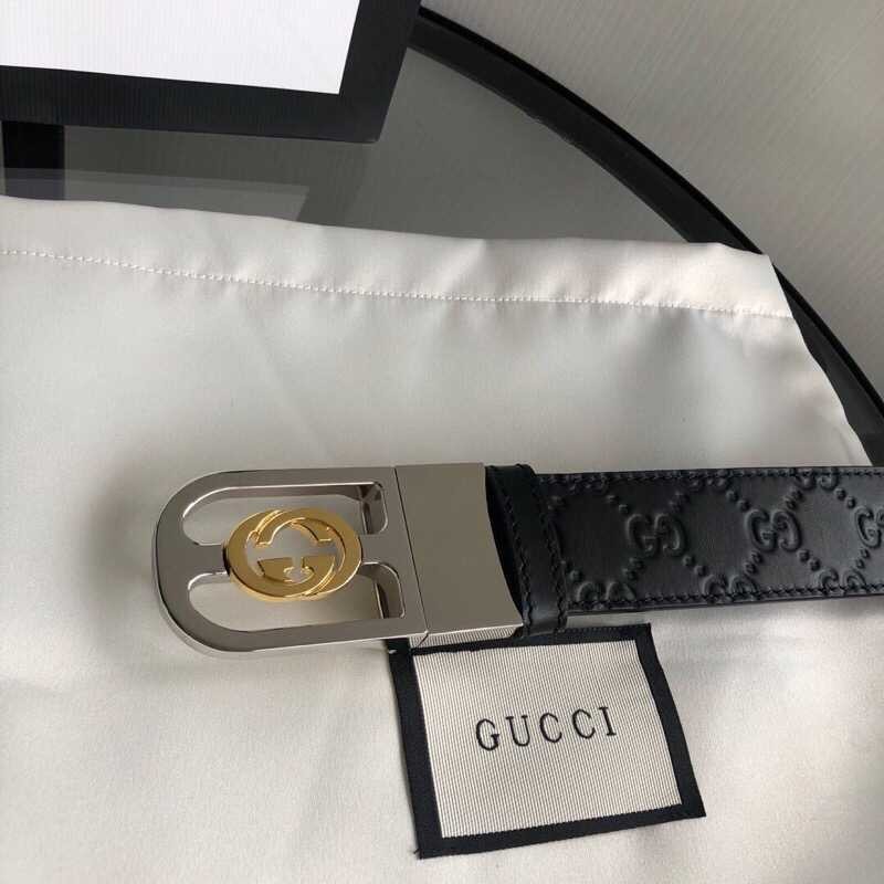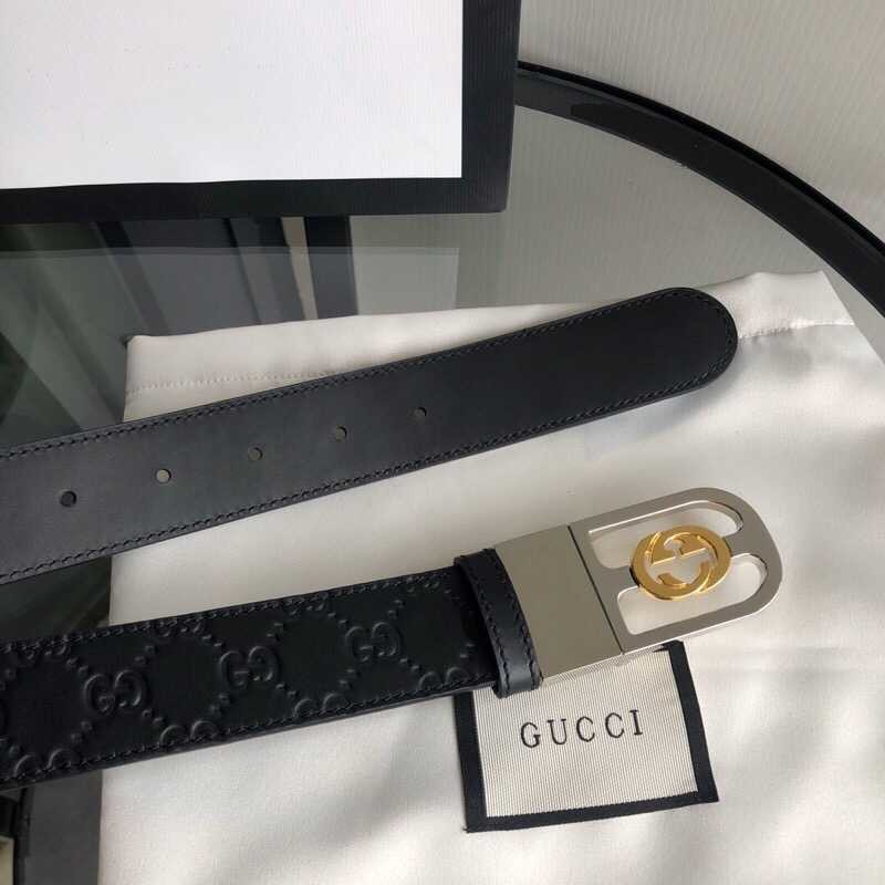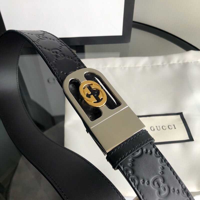 Gucci Interlocking G cowhide embossed belt 3.5cm