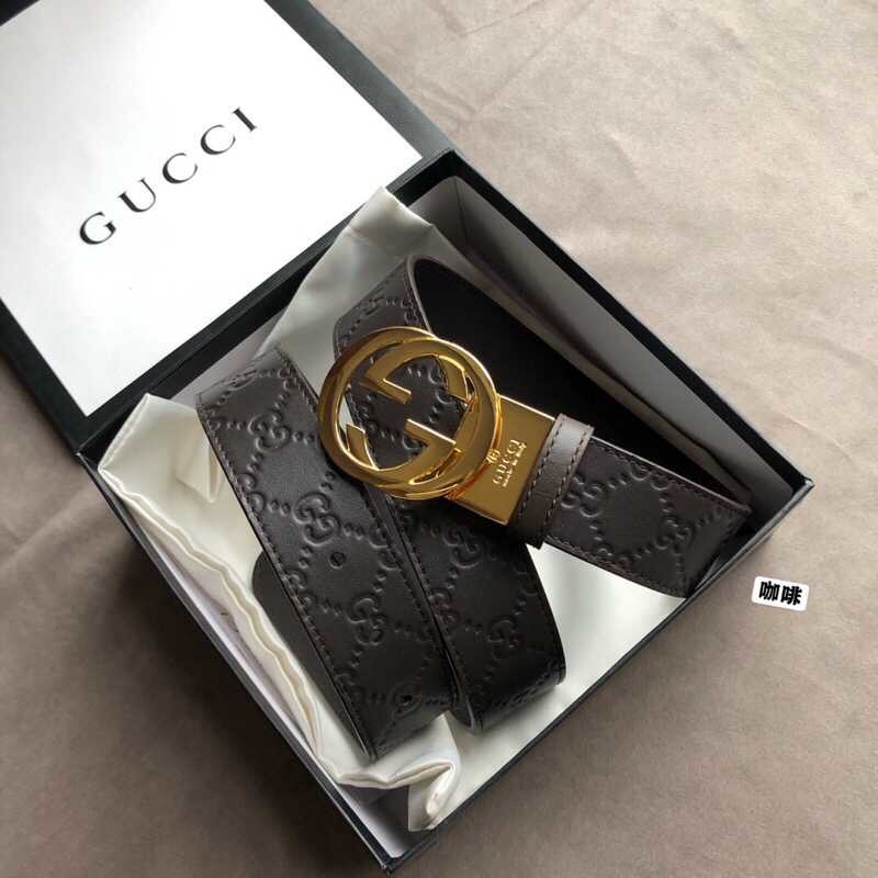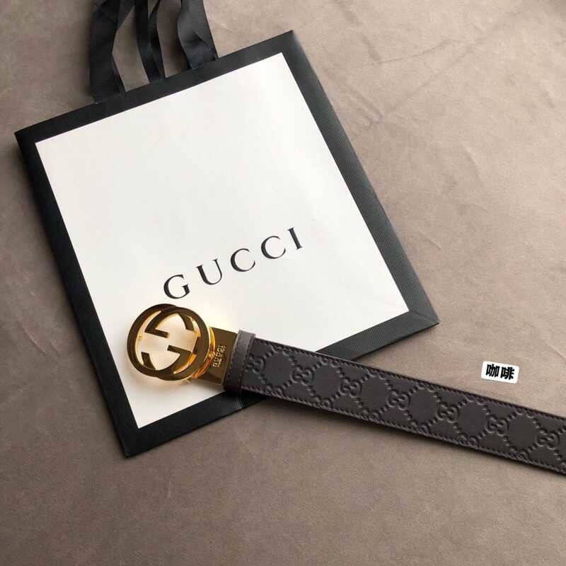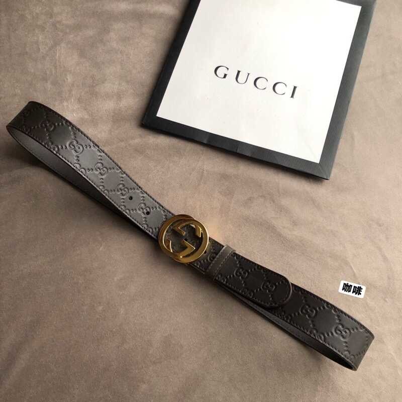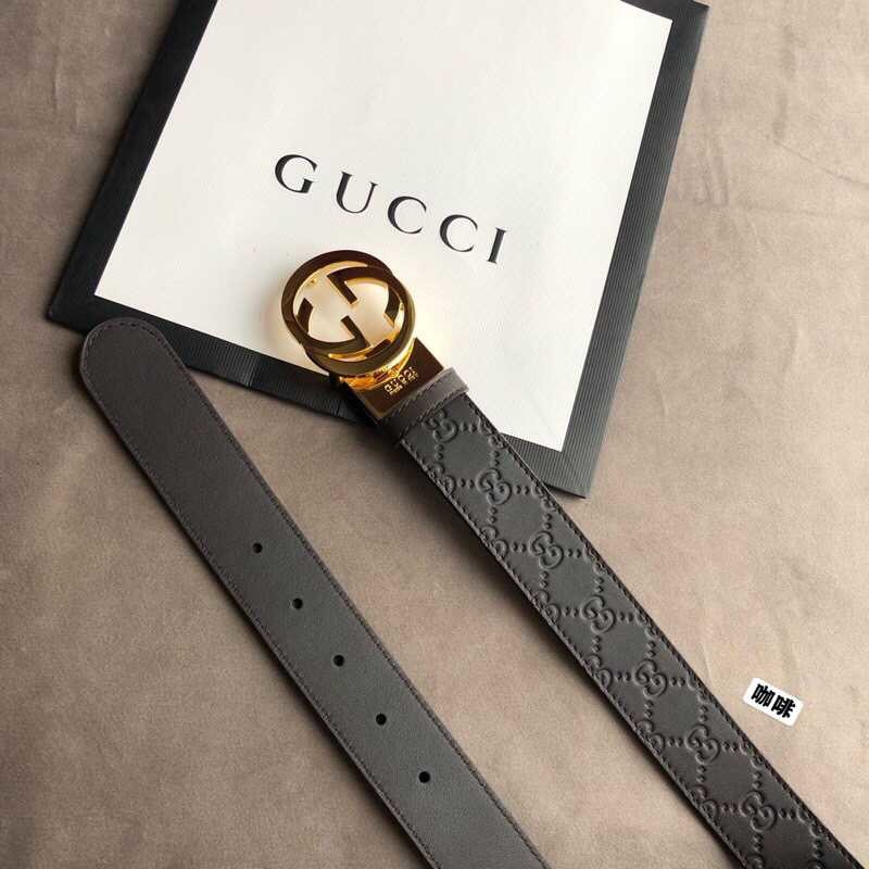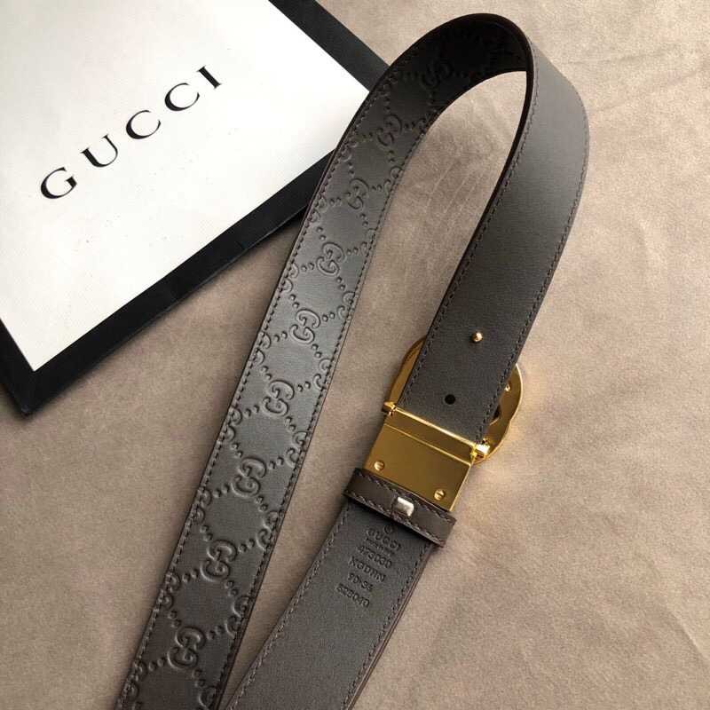 Gucci Men s cowhide embossed metal rotating buckle belt 3.5cm