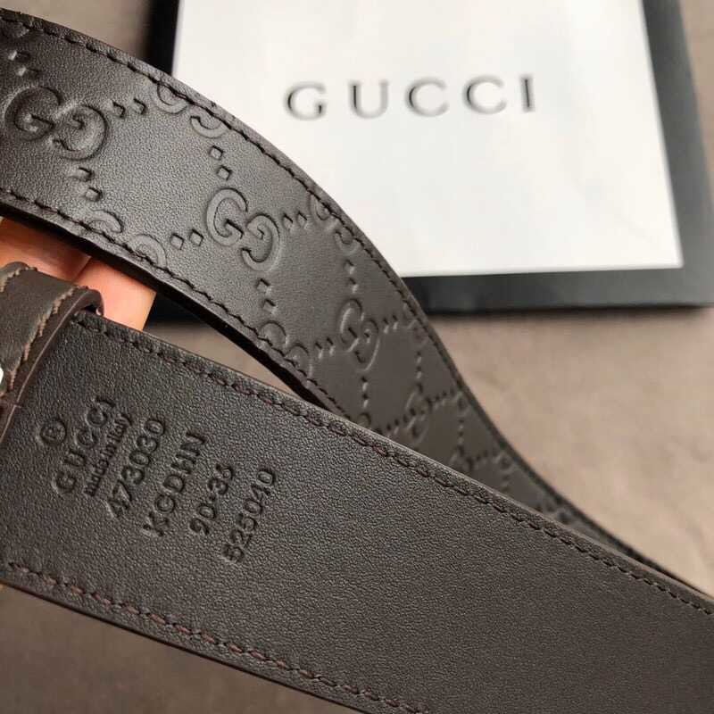 Gucci Exquisite square metal buckle GG embossed black cowhide belt 35mm