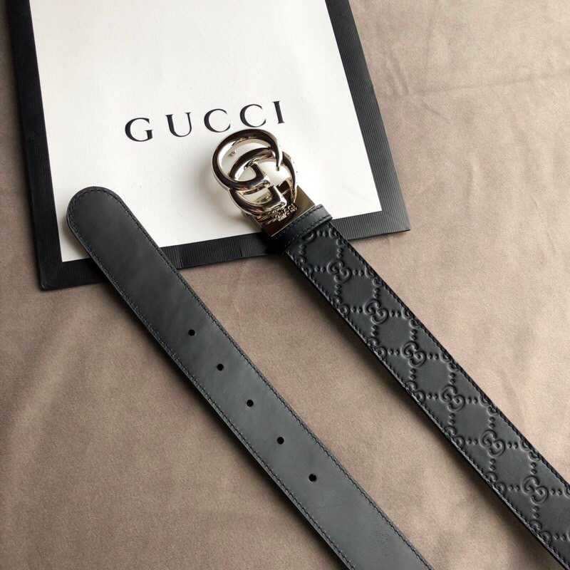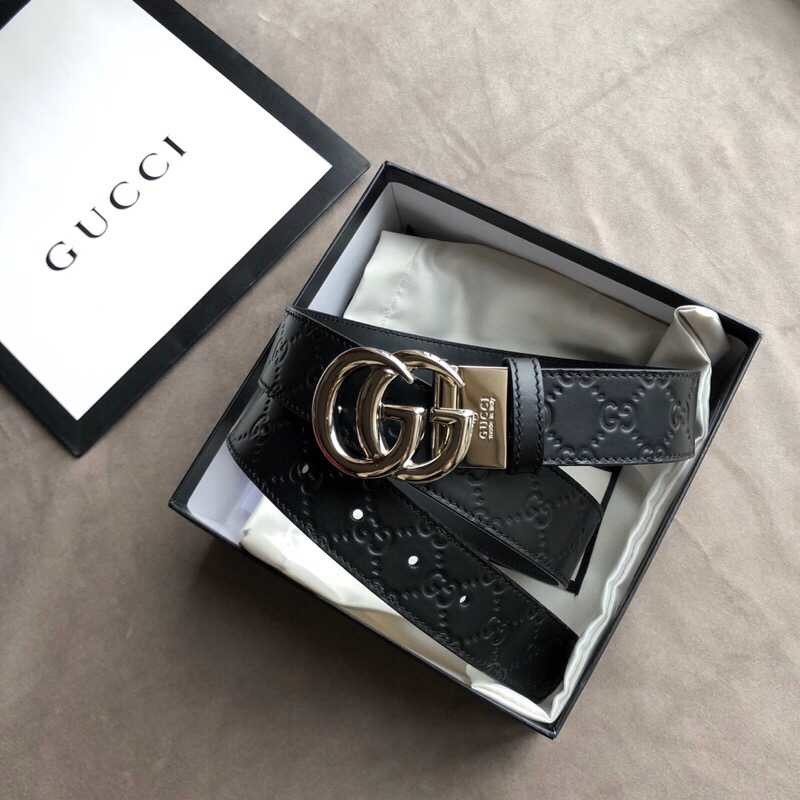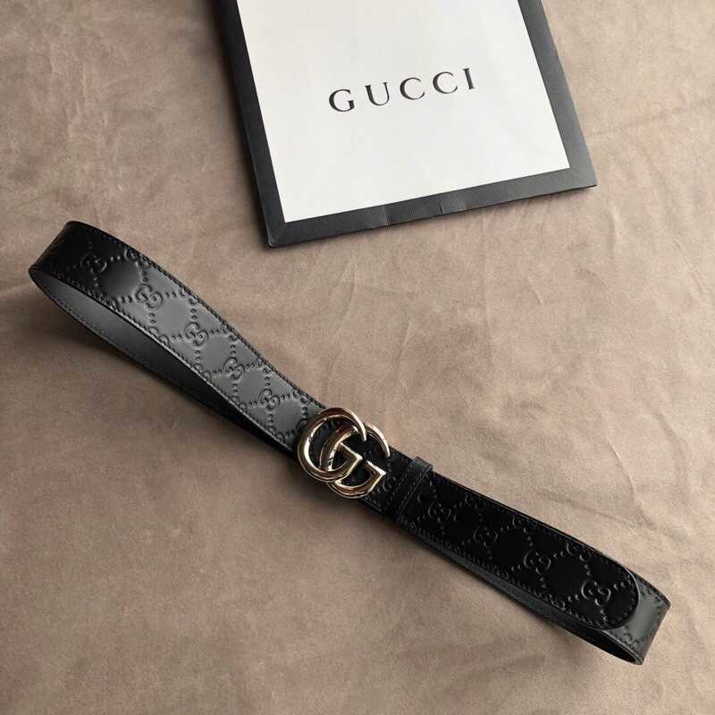 Gucci Exquisite square metal buckle GG embossed black cowhide belt 35mm