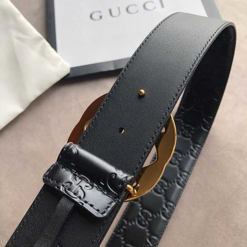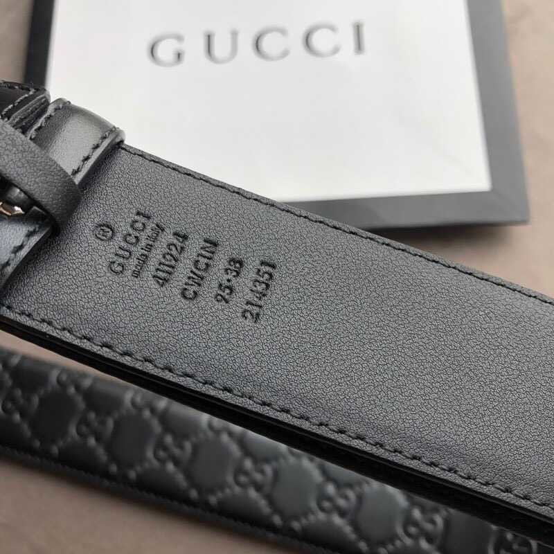 Gucci Exquisite square metal buckle GG embossed black cowhide belt 35mm