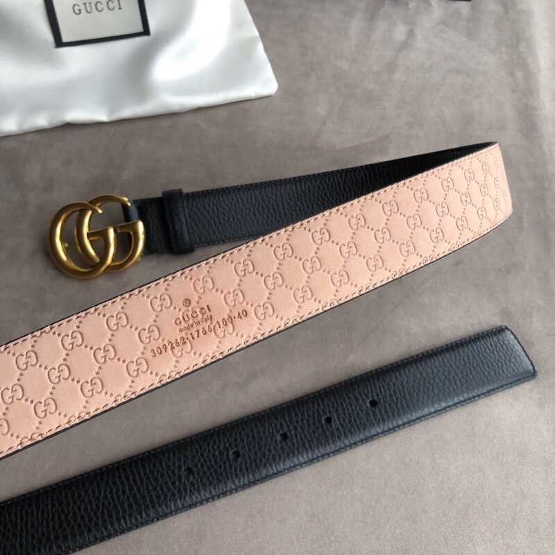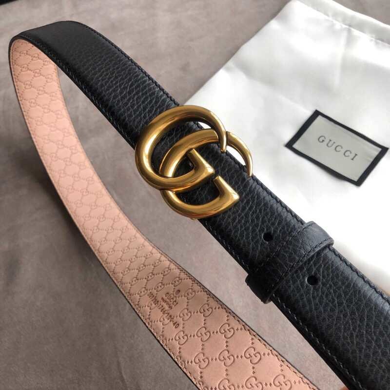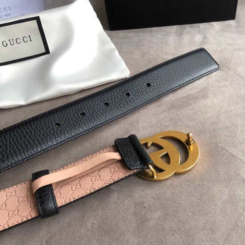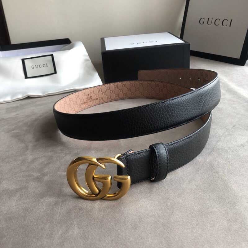 Gucci 3.5cm full leather black gold buckle/silver buckle GG belt