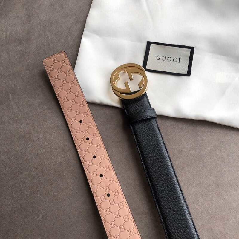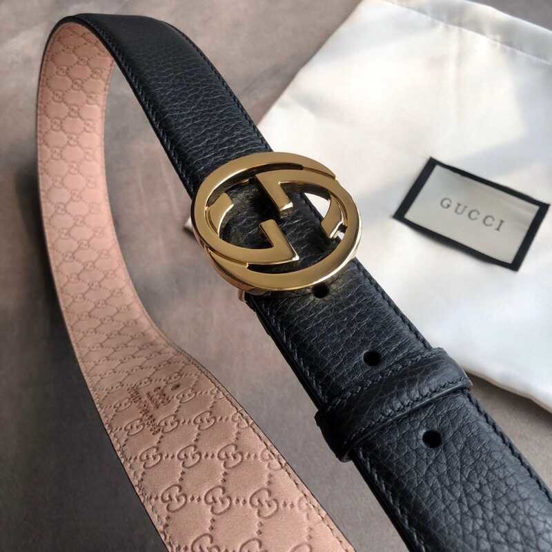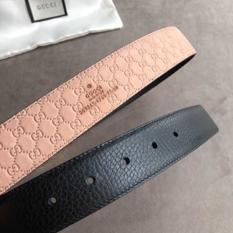 Gucci 3.5cm full leather black gold buckle/silver buckle GG belt