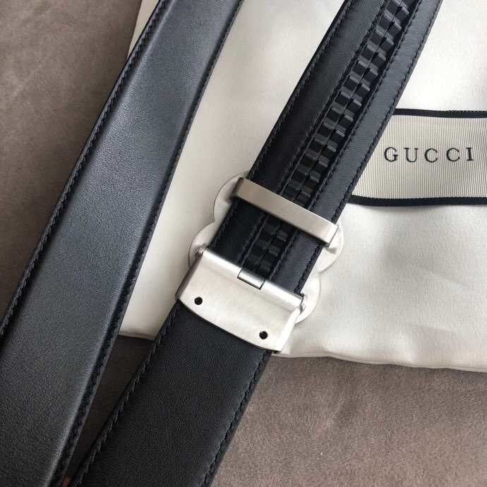 Gucci Exquisite square metal buckle GG embossed black cowhide belt 35mm