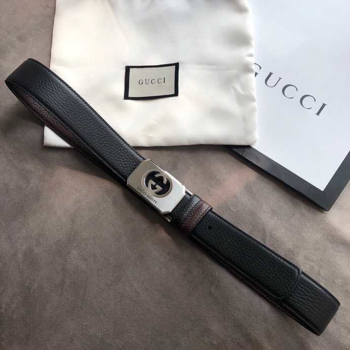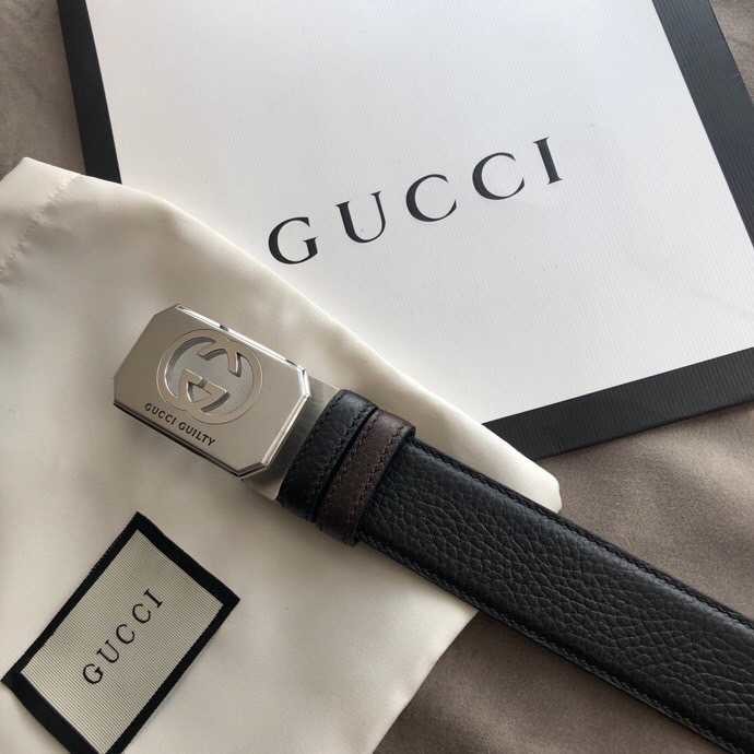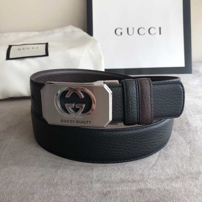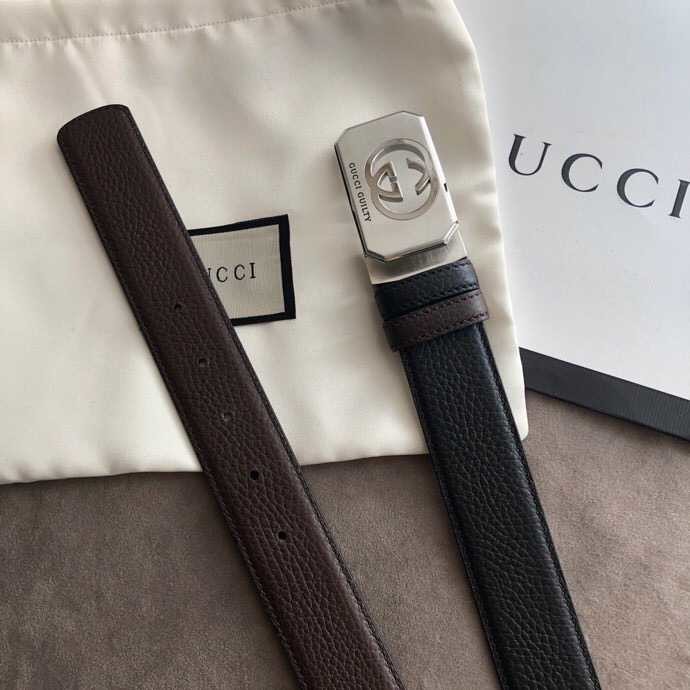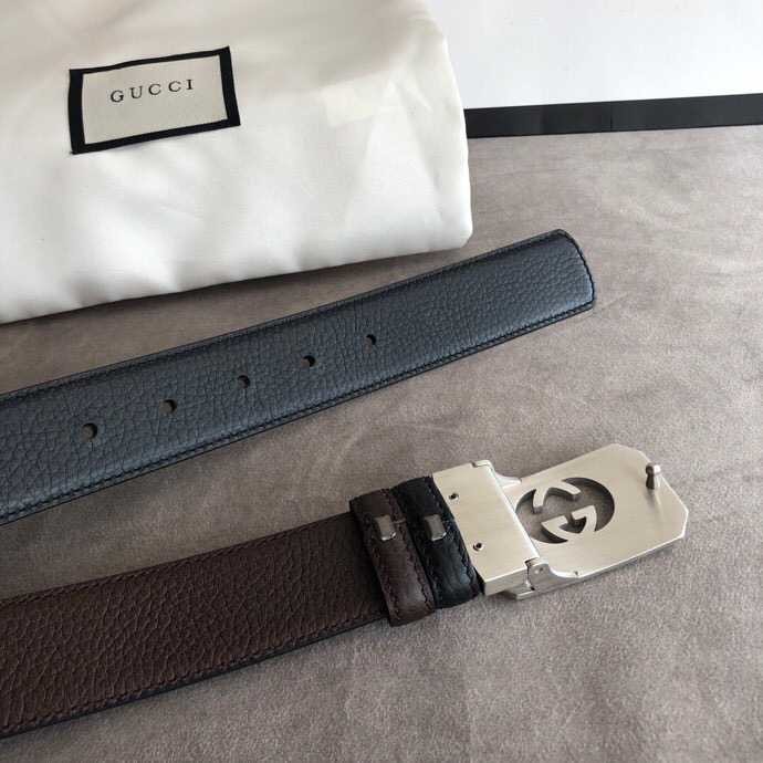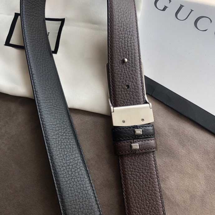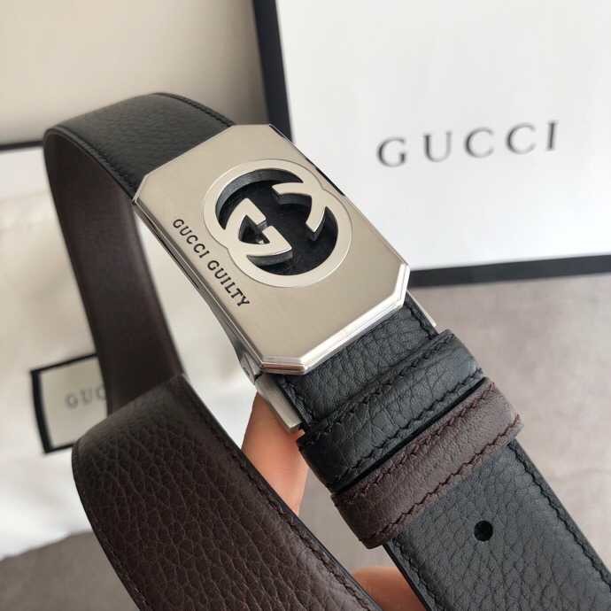 Gucci Stainless Steel Hollow Metal Buckle Cowhide Reversible Belt 35mm