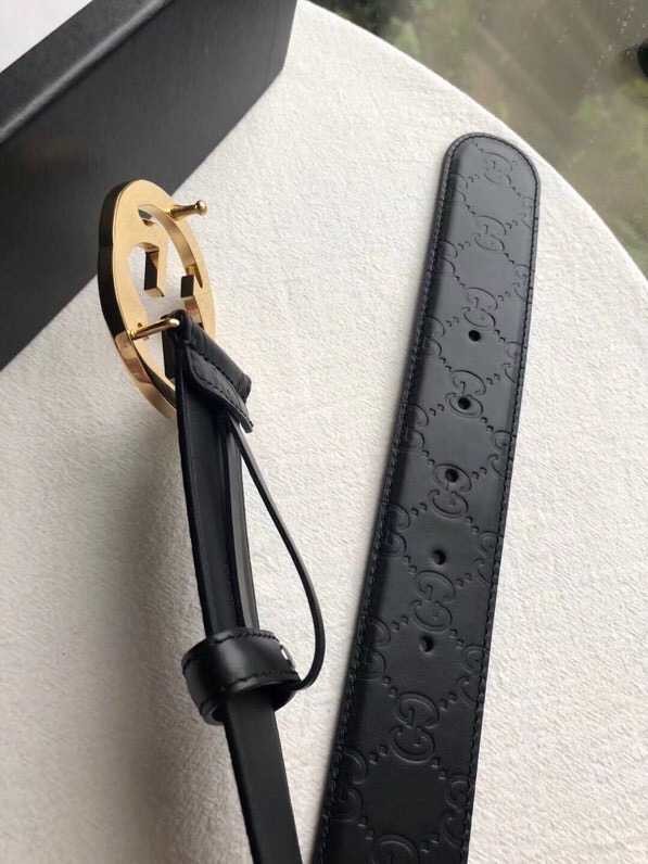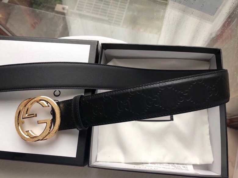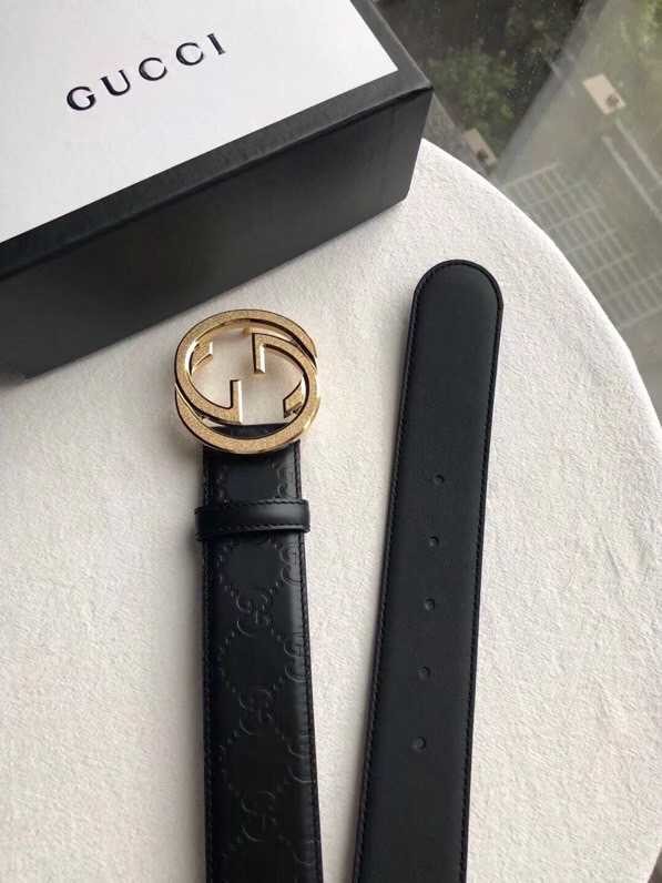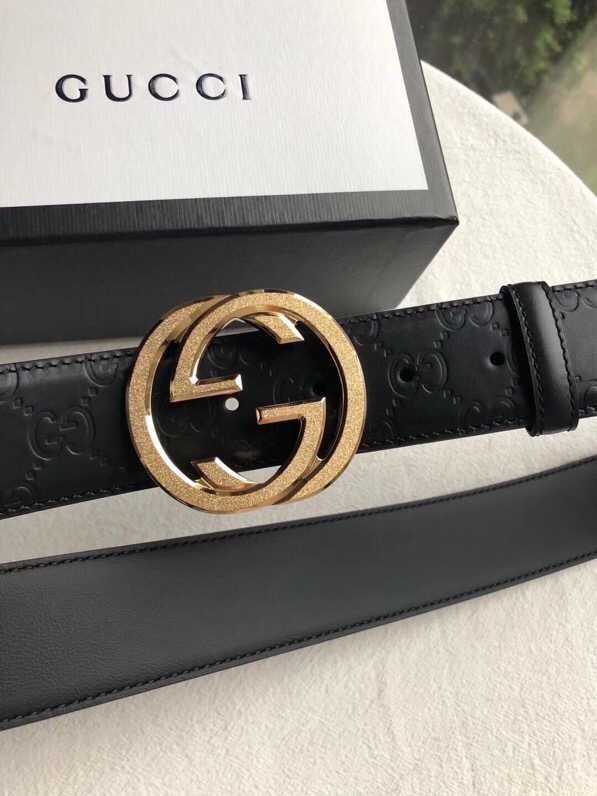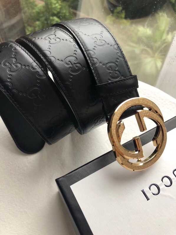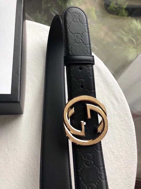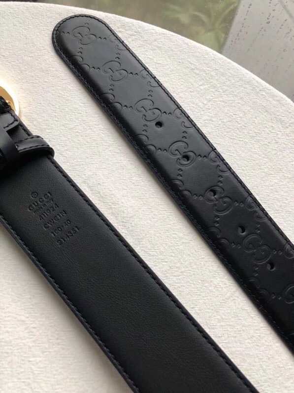 Gucci Signature men s stainless steel GG metal buckle embossed black cowhide belt 3.8cm