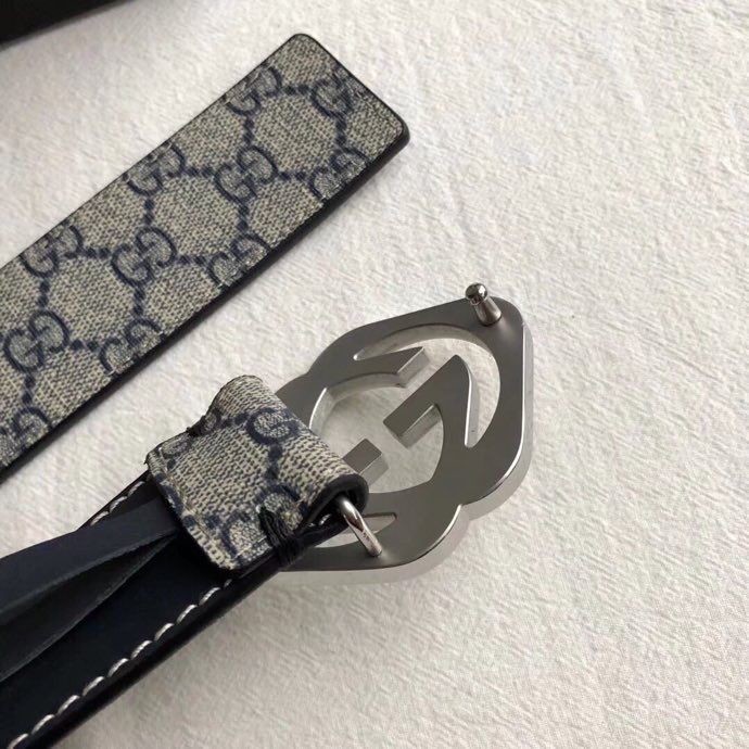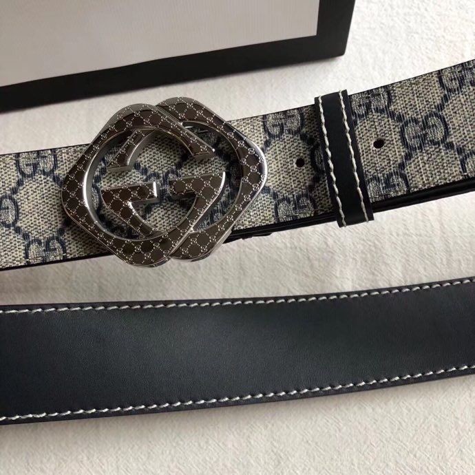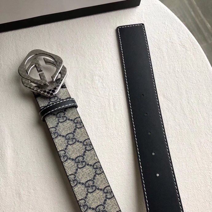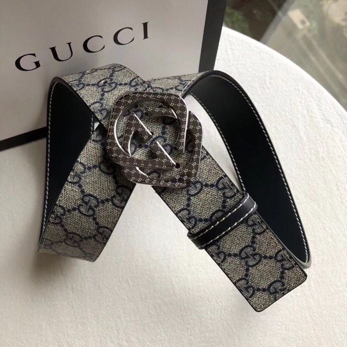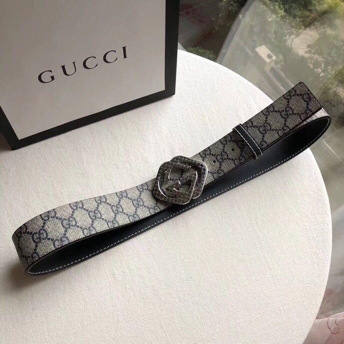 Gucci Stainless steel gold diamond pattern metal buckle PVC cowhide belt 3.8