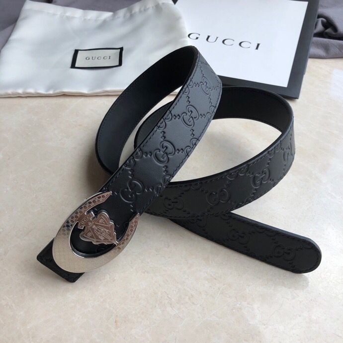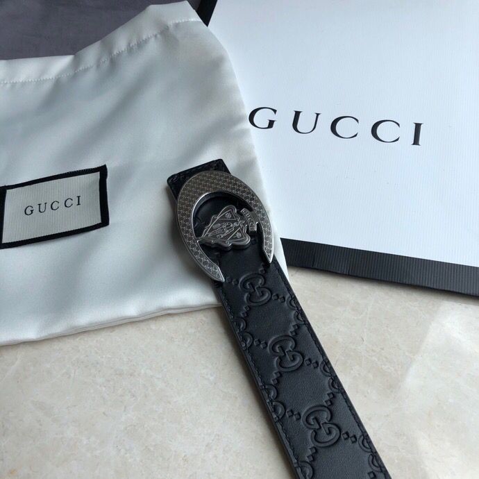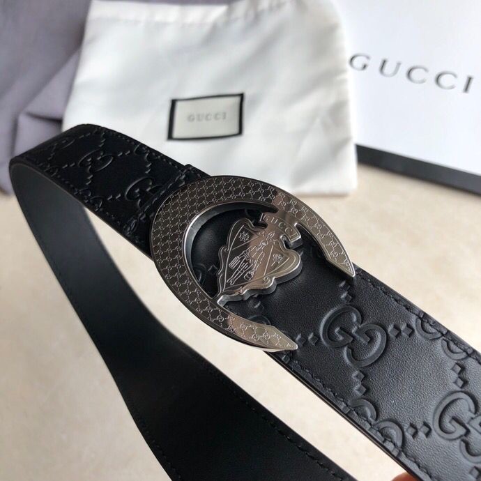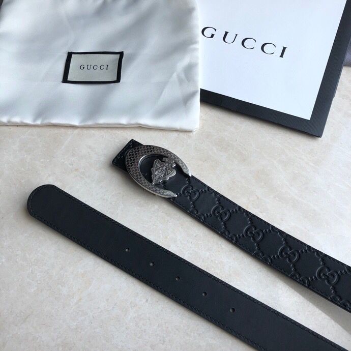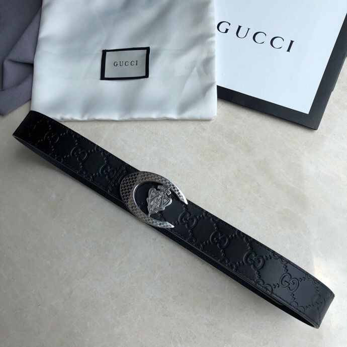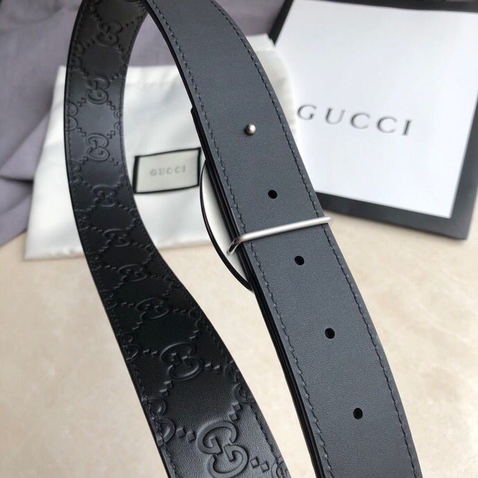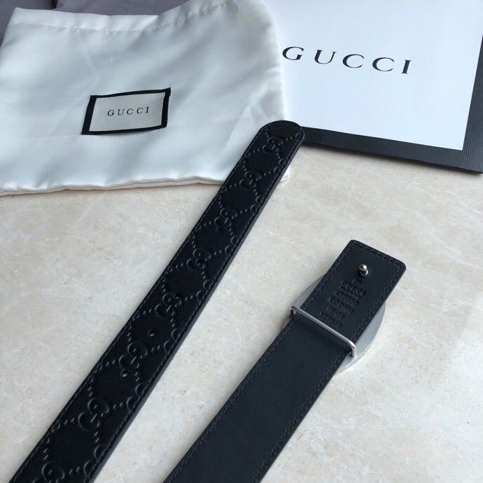 Gucci 3.5cm belt with GG embossed cowhide black stainless steel shield and metal buckle