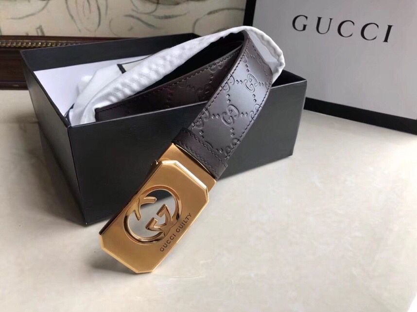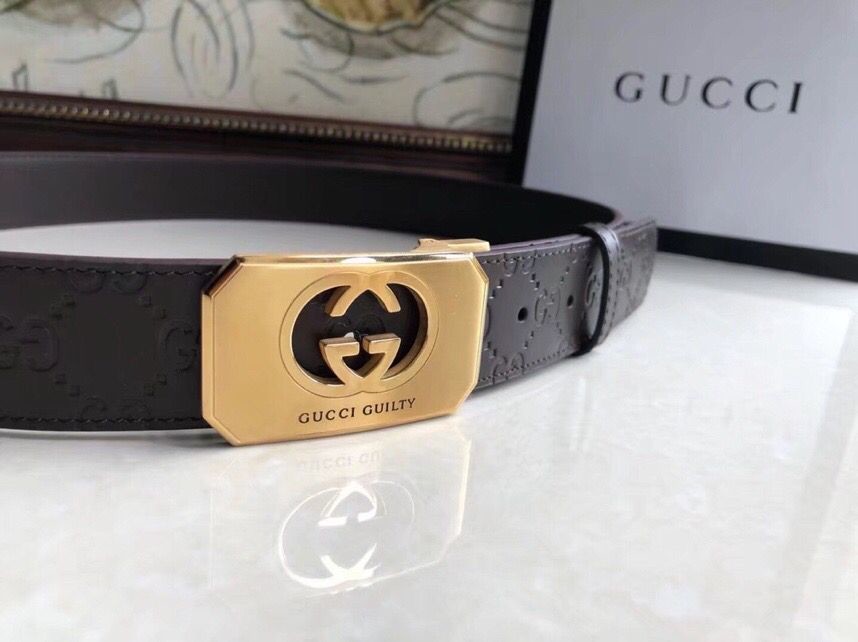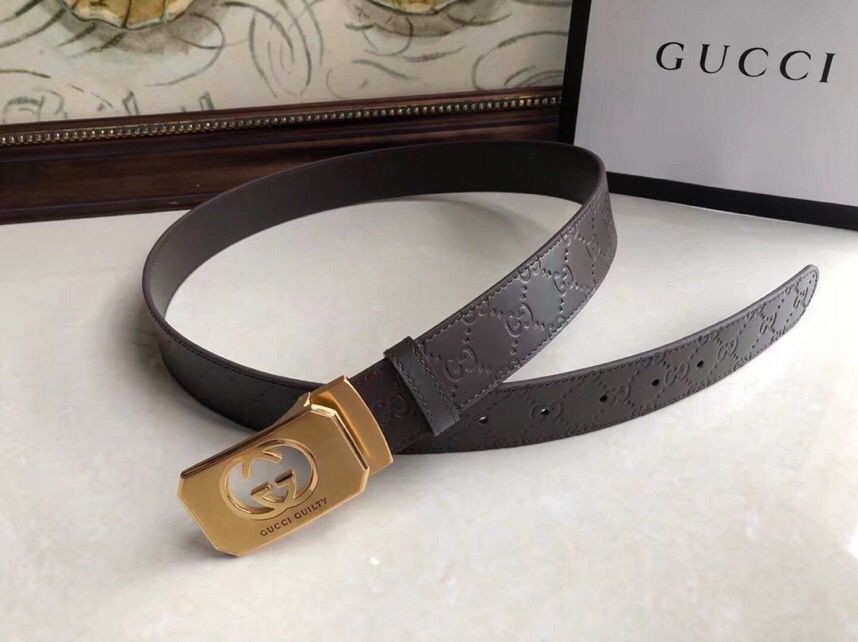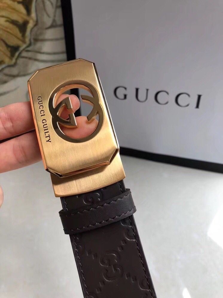 Gucci Metal buckle belt head embossed with cowhide leather 35mm belt