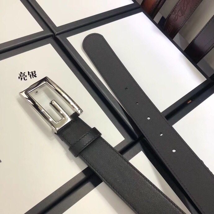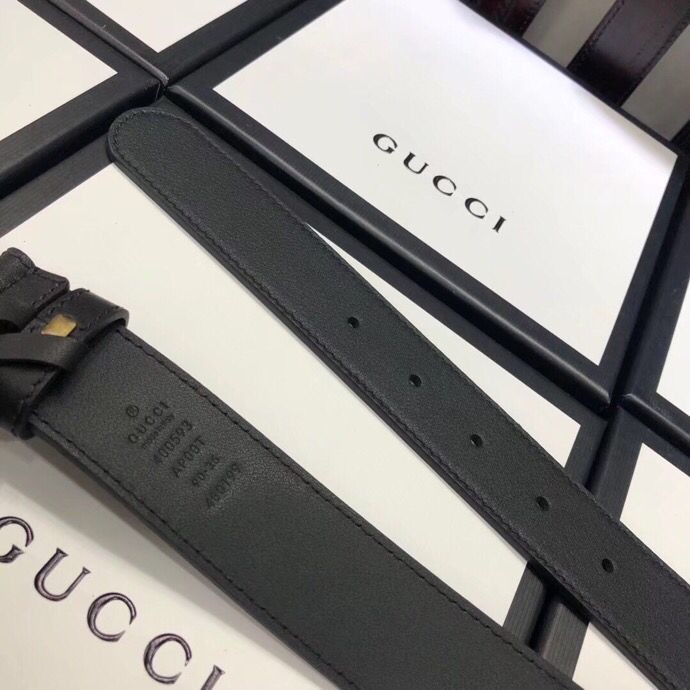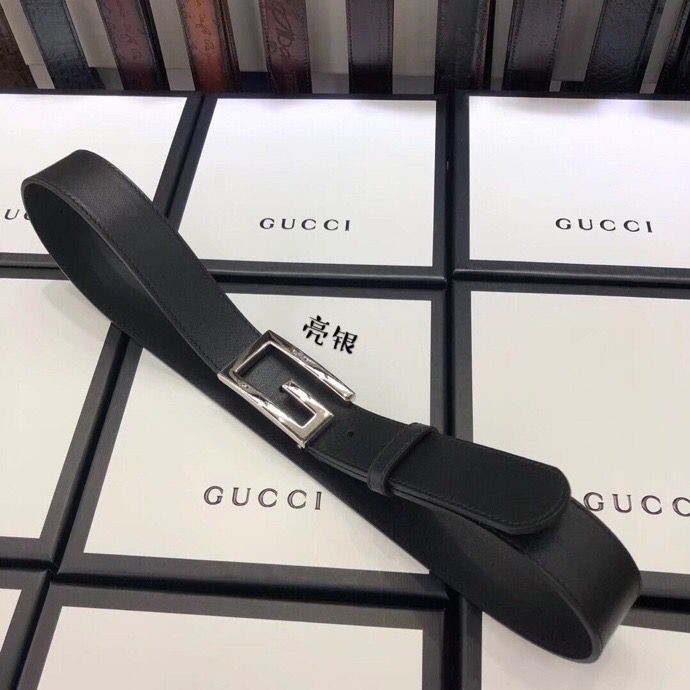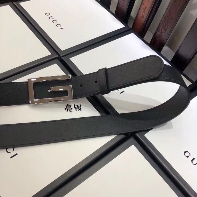 Gucci 3.5cm full leather black gold buckle/silver buckle/gun buckle GG belt