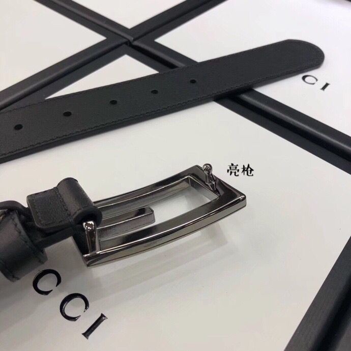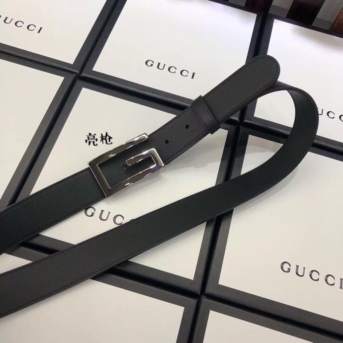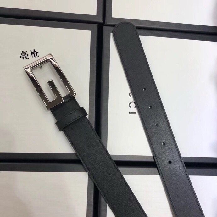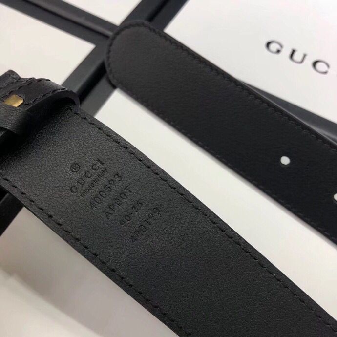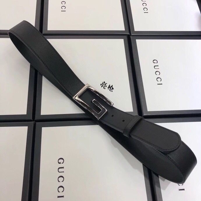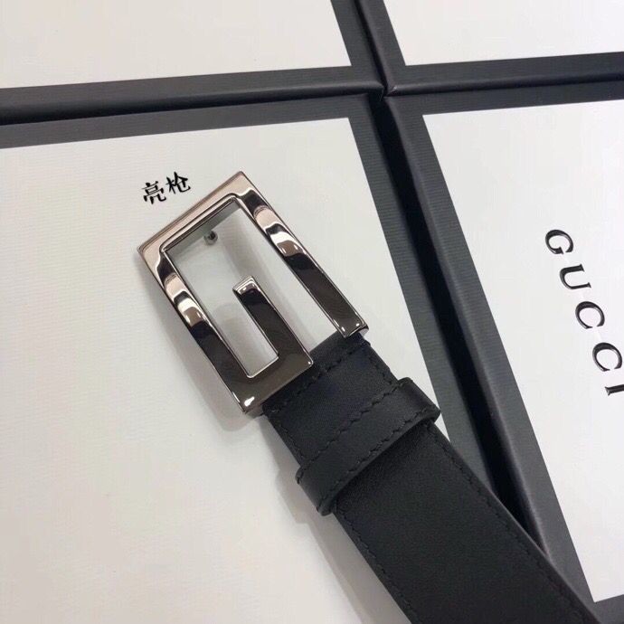 Gucci 3.5cm full leather black gold buckle/silver buckle/gun buckle GG belt