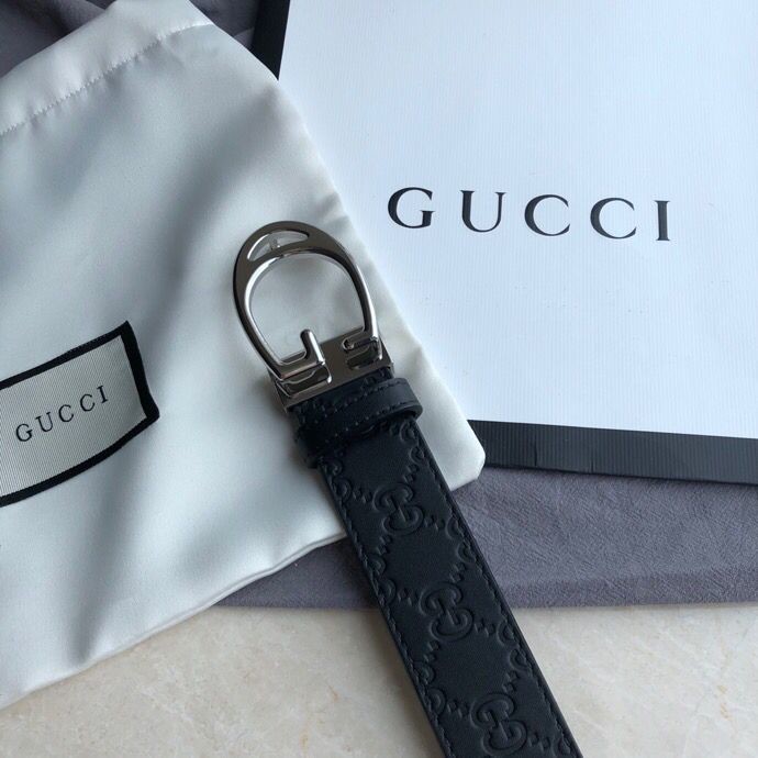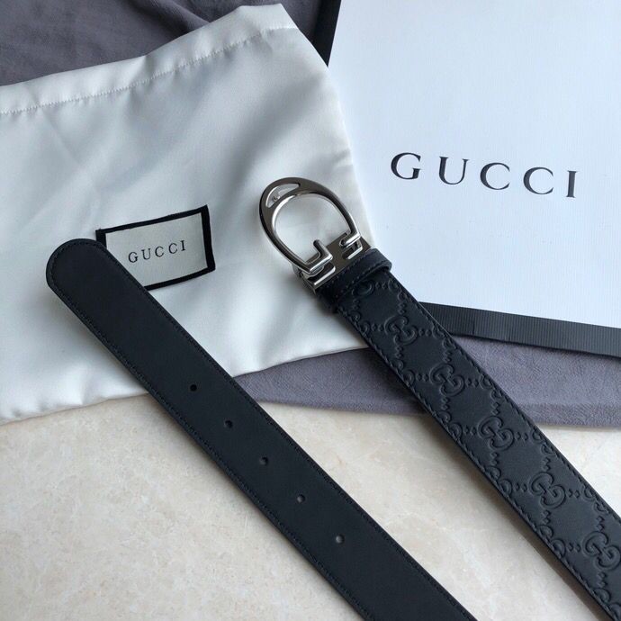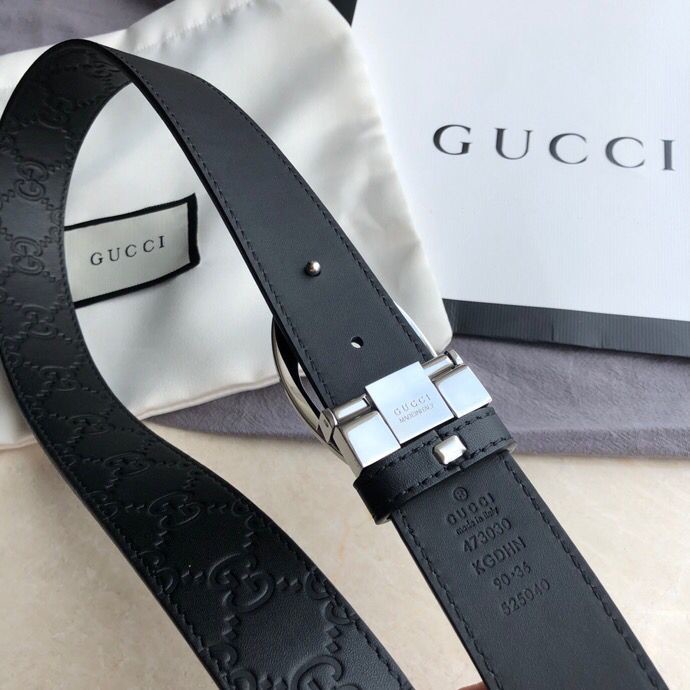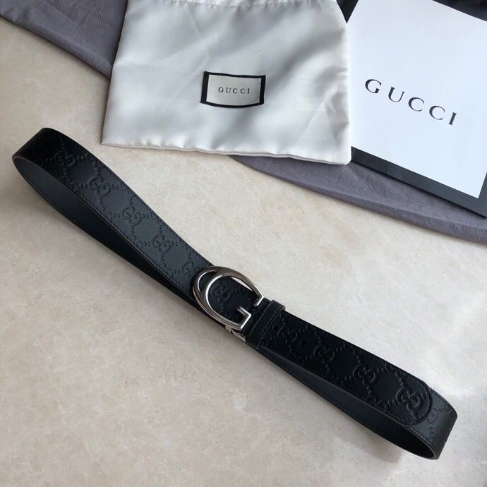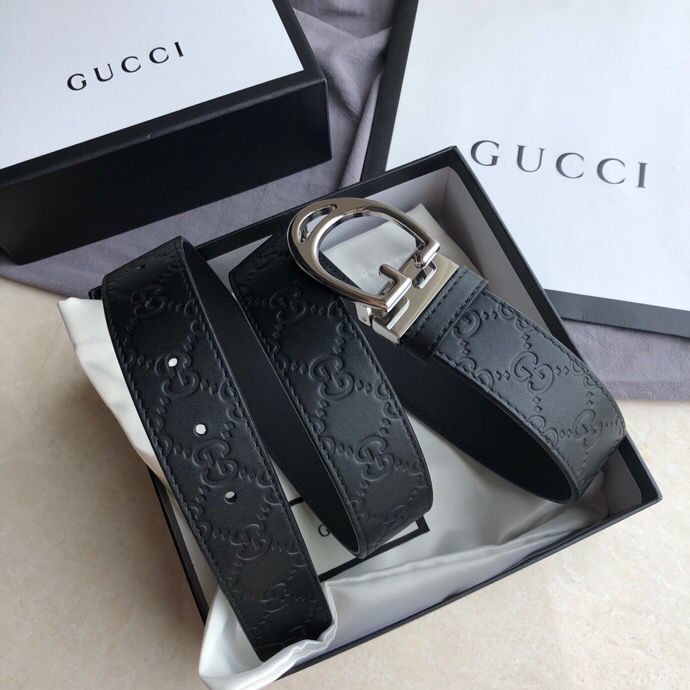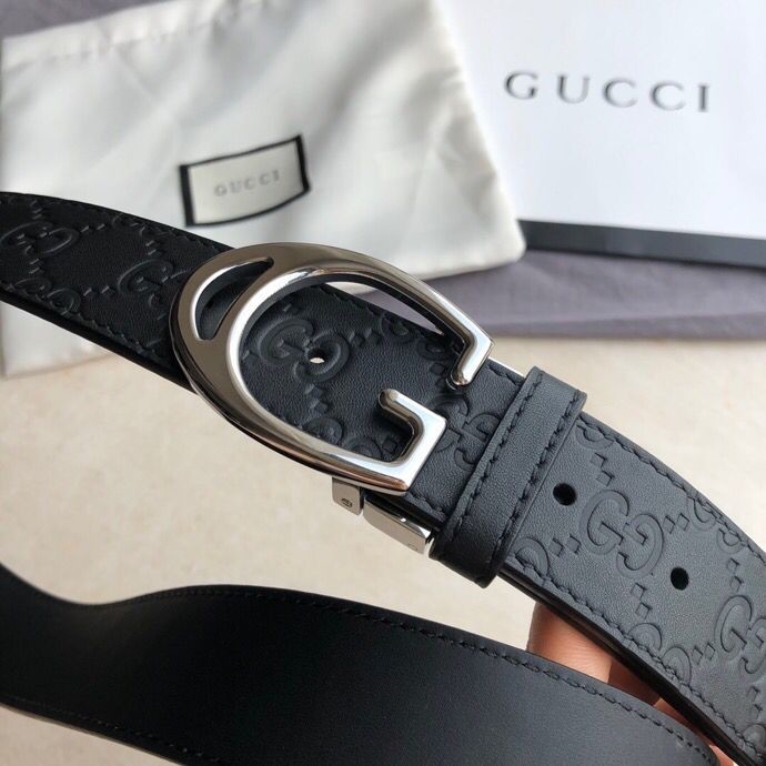 Gucci Men s cowhide embossed steel G-shaped metal buckle belt 3.5cm