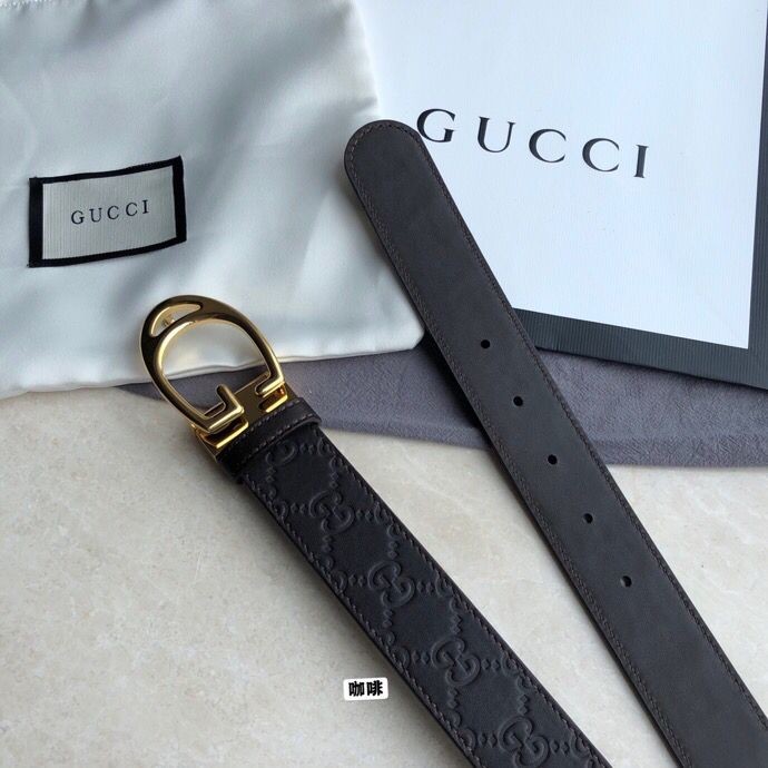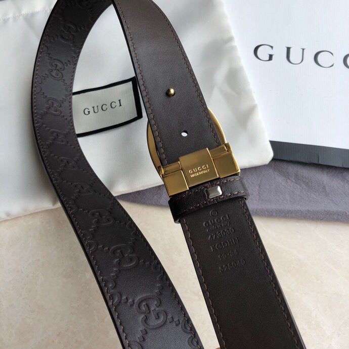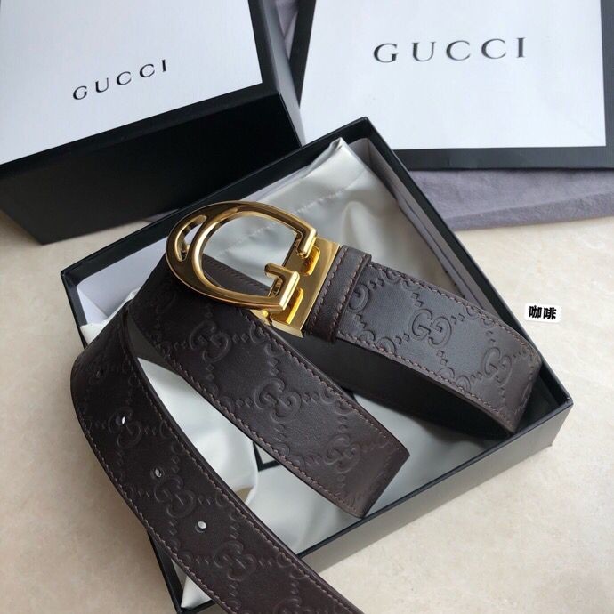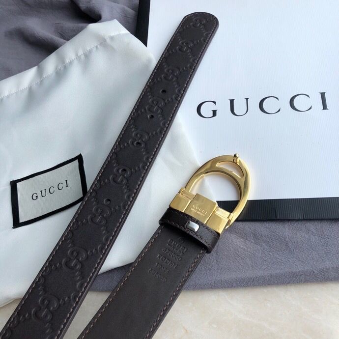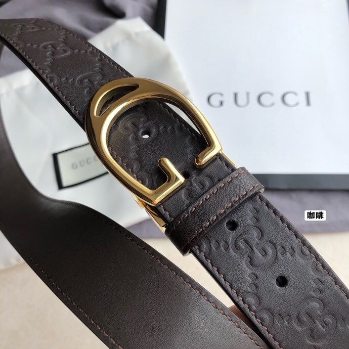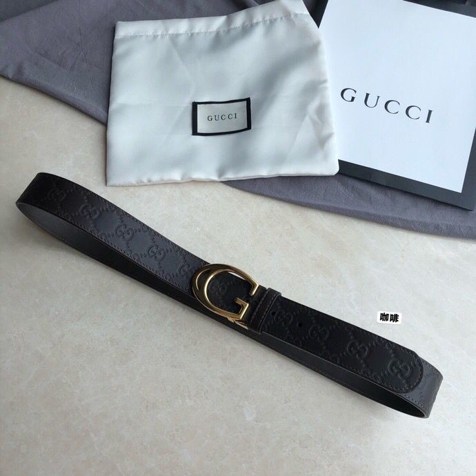 Gucci Men s cowhide embossed steel G-shaped metal buckle belt 3.5cm