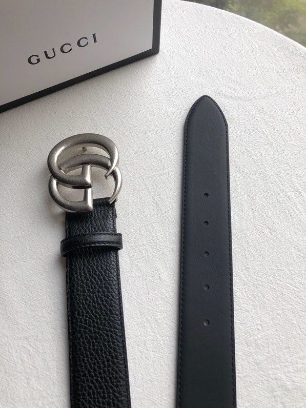 Gucci Exquisite square metal buckle GG embossed black cowhide belt 35mm